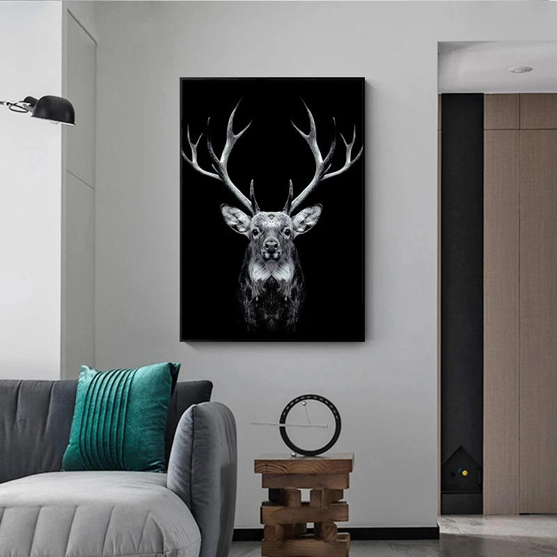 Черные плакаты с оленем и принтами животных, картины на холсте, настенные художественные картины для гостиной, абстраонизм, интерьер, украшение для дома icon star icon star icon star icon star icon star