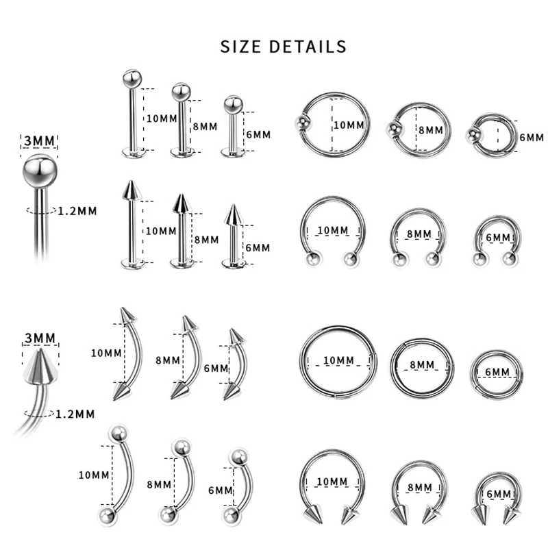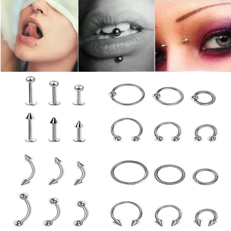 Набор для пирсинга тела, искусственный смешанный набор, кольцо для губ, носа, бровей, кольцо для носа, пупка, кольцо для пирсинга тела