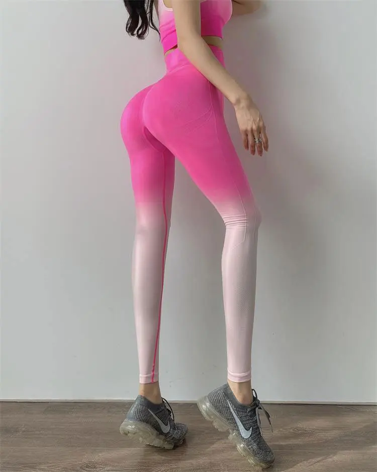 Женские Бесшовные Леггинсы с эффектом омбре, штаны для йоги с высок...