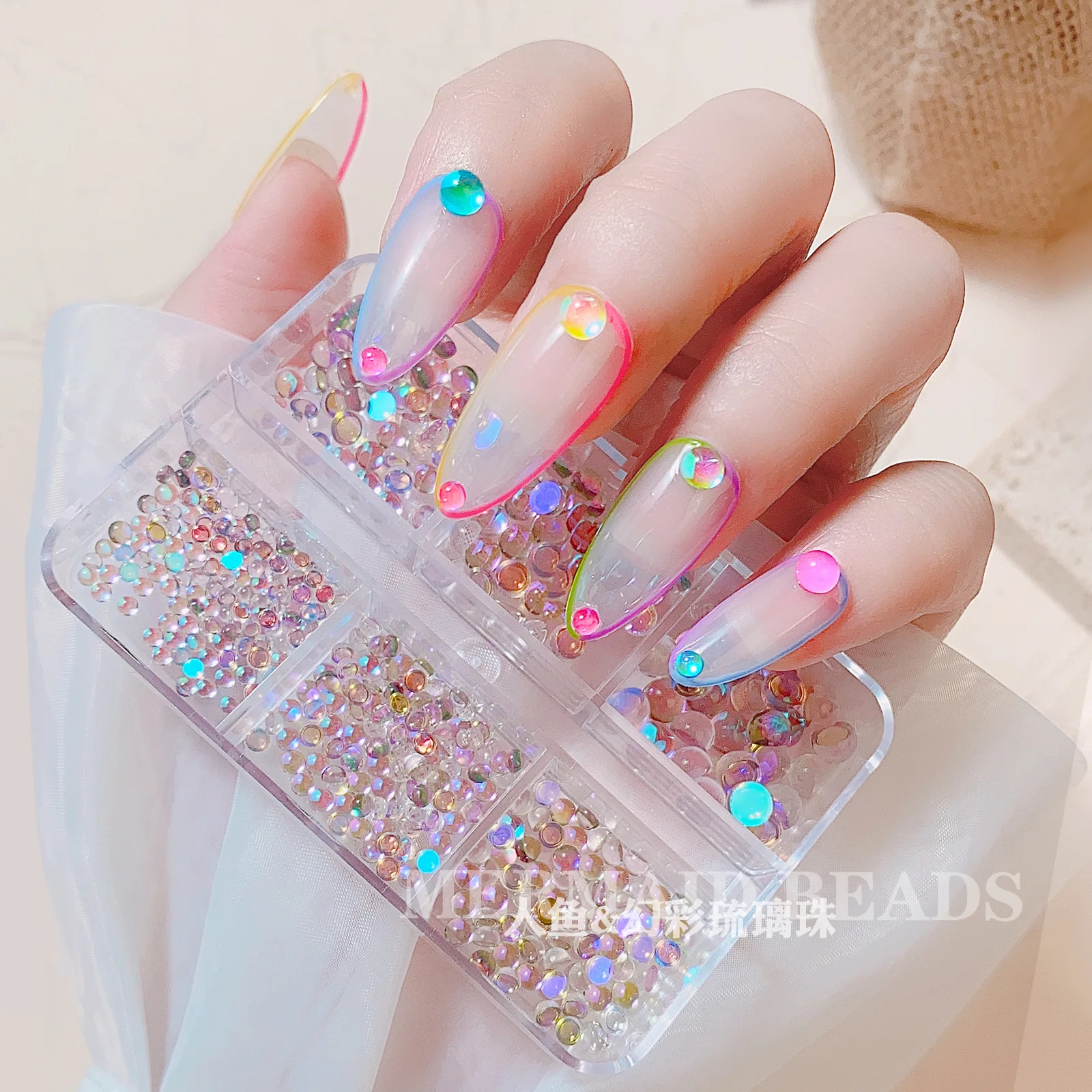 Набор ювелирных украшений для ногтей сделай сам, Русалка, круглые стеклянные хрустальные бусины AB 3D, стразы с плоским основанием, акриловые камни, украшения