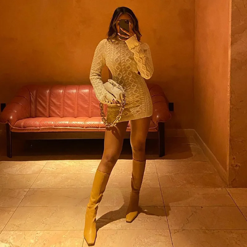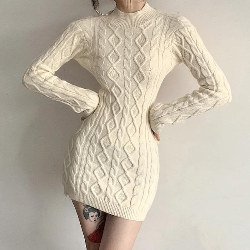 Осеннее трикотажное мини-платье с воротником-стойкой, однотонное привлекательное облегающее платье с открытой спиной и вырезом, женская модная одежда в стиле High Street, осень 2021