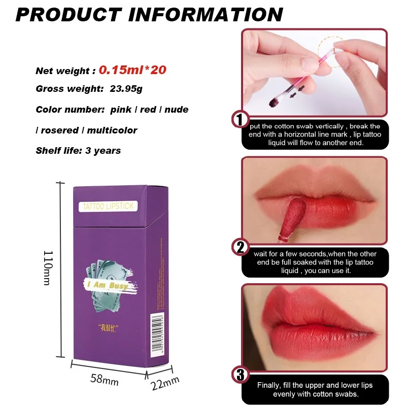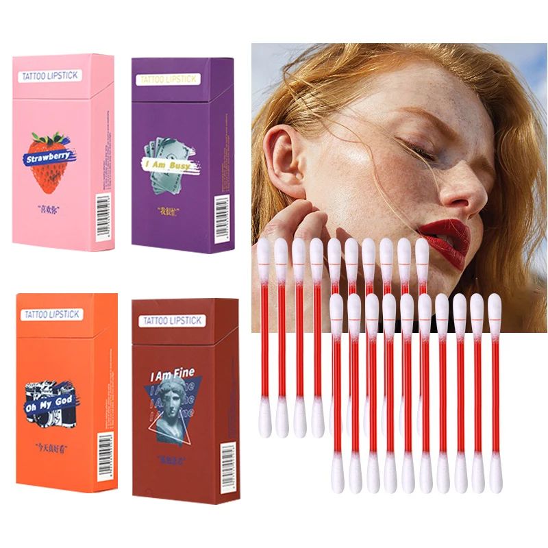 20 шт.компл. ватные палочки для губ, портативные креативные несмываемые помады, косметика, сигаретный чехол, Жидкий блеск для губ, макияж