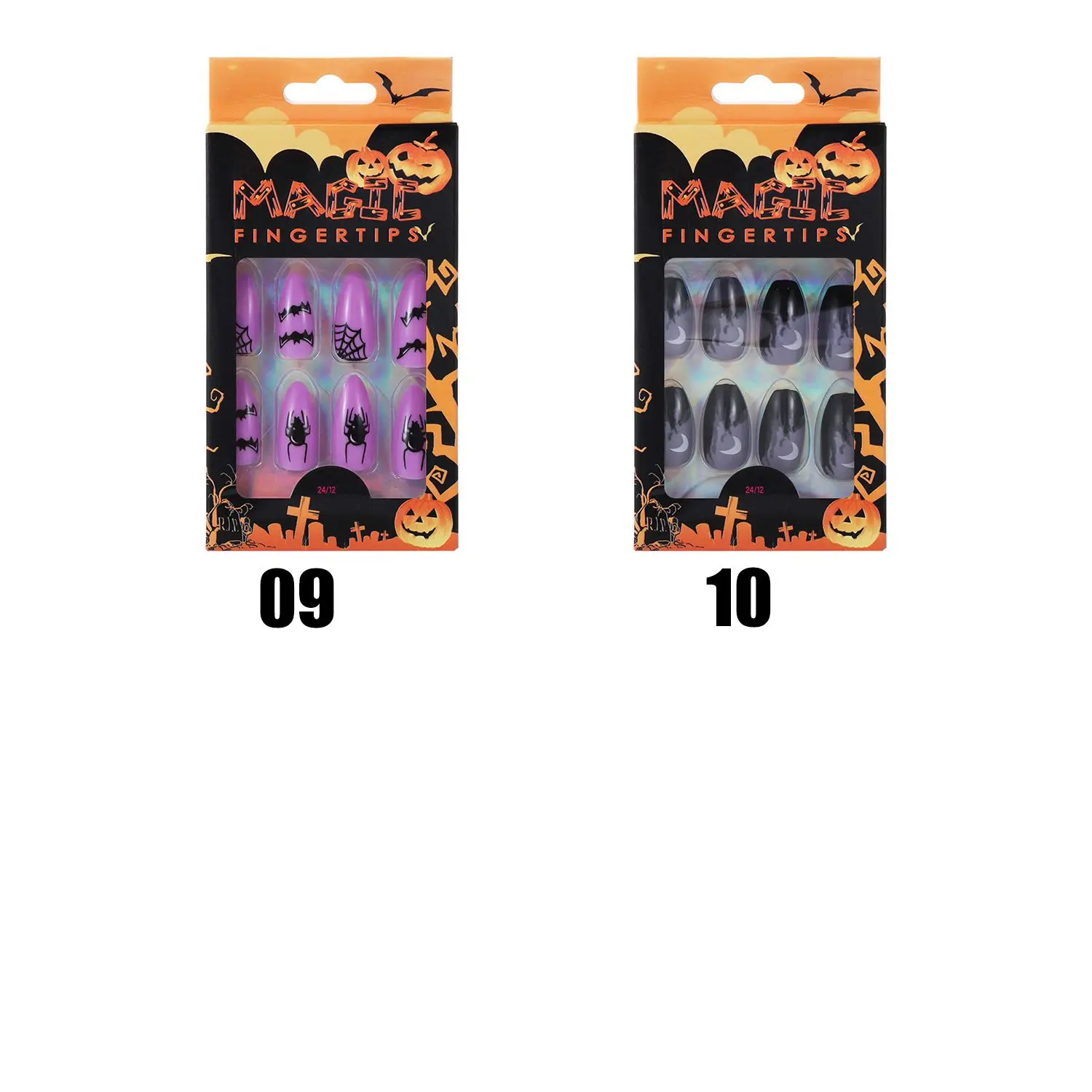 24 шт.кор. накладные ногти на шпильке в стиле Хэллоуин съемные носи...