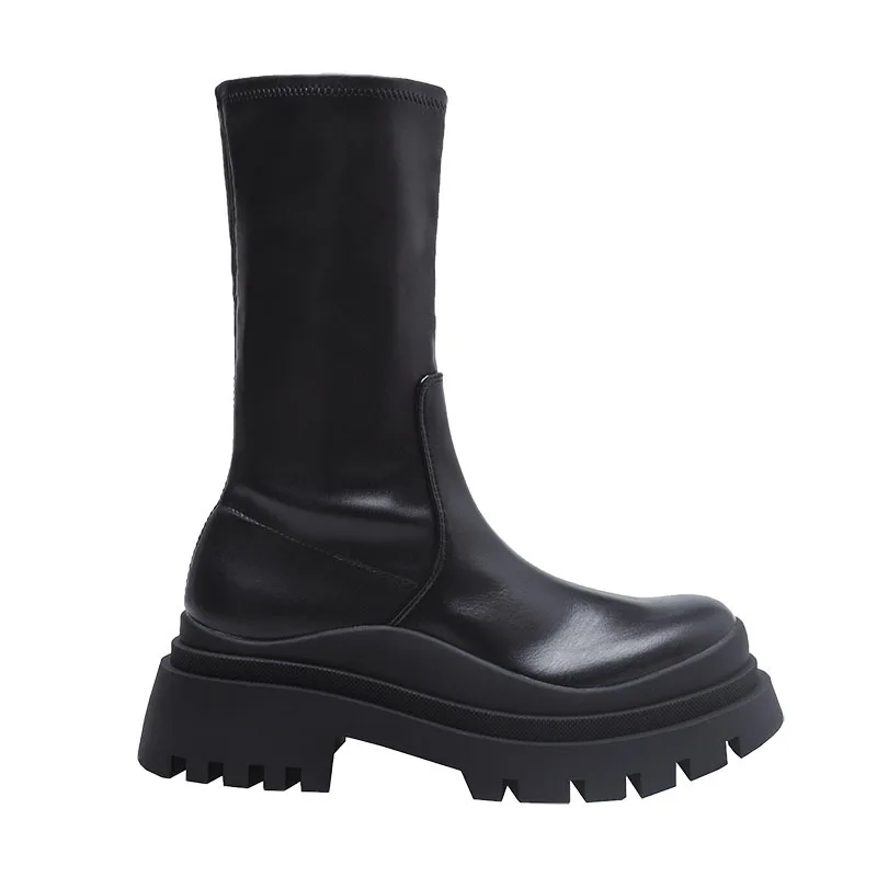 Ботинки женские осенние черные на платформе, с круглым носком, на м...