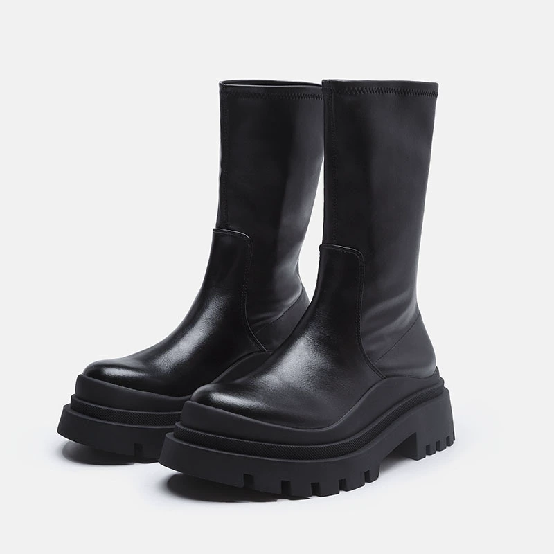 Облегающие Ботинки Челси, женские ботильоны на толстой платформе бе...