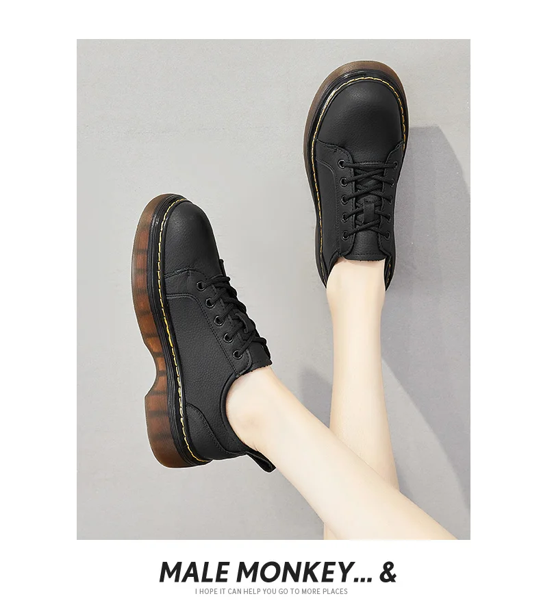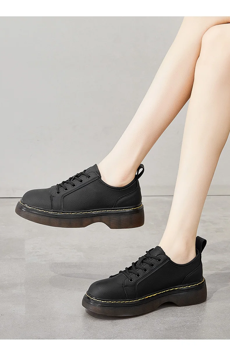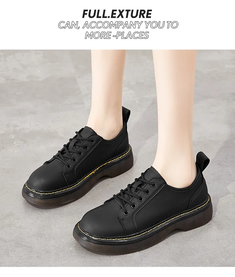Туфли-оксфорды на платформе женские кожаные, 2021, модные, уличные, удобные, Нескользящие, повседневные, на шнуровке, винтажные, черные
