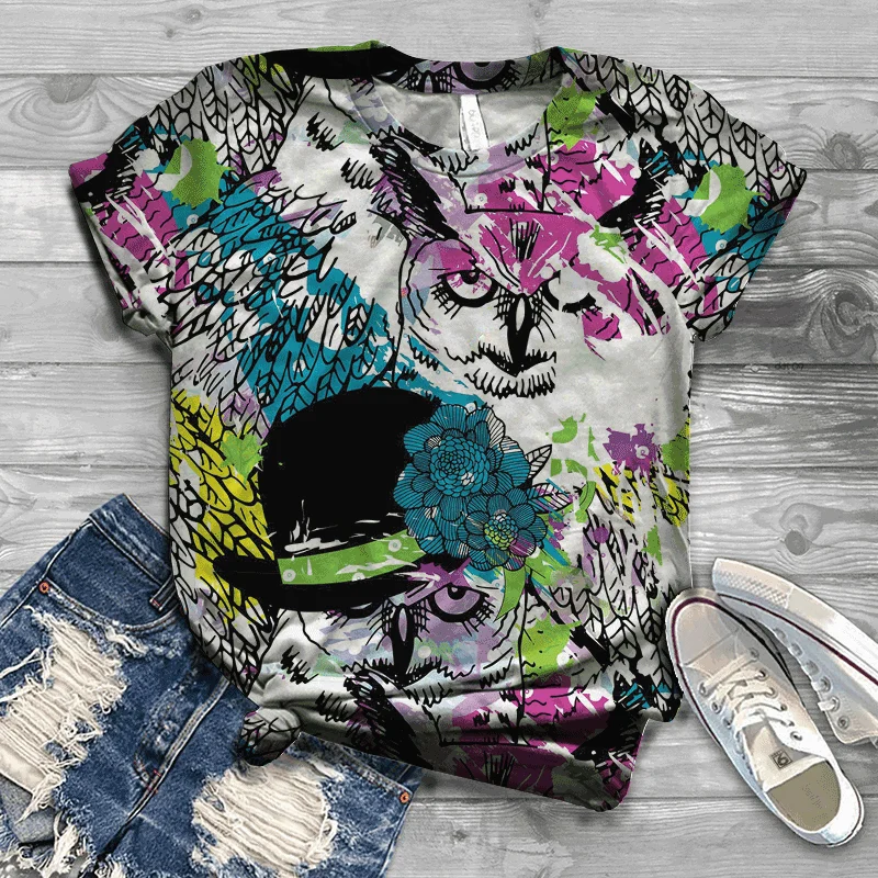 Новая модная оригинальная женская футболка с 3D принтом 2021, женская футболка в стиле Харадзюку, искусственная кожа, забавный стиль, милые животные, кошка, птица, тигр