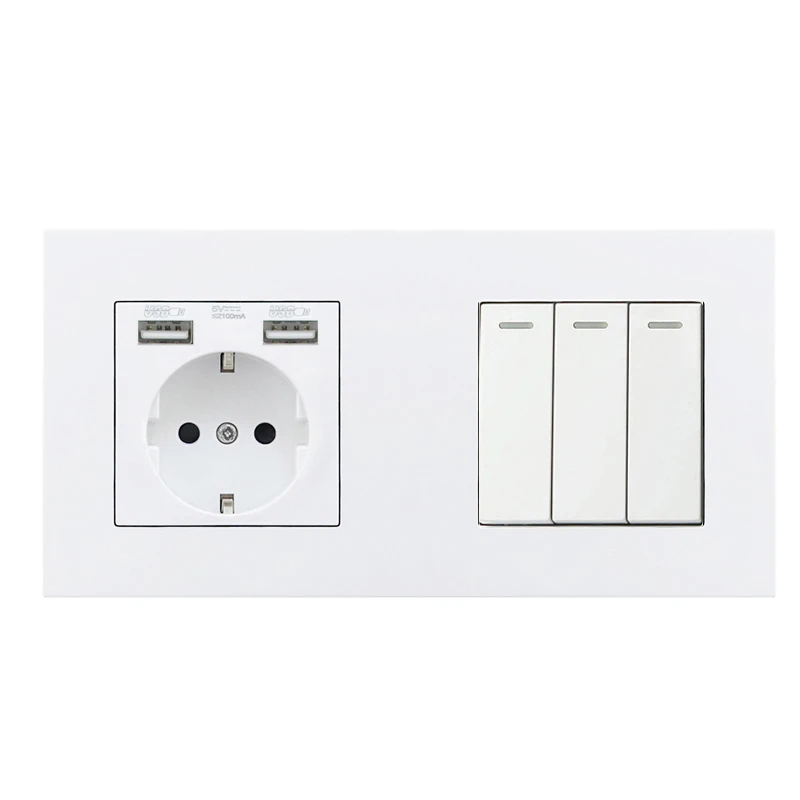 Двойная электрическая розетка, два USB-порта, 1, 2, 3, 4 лампы, настенная электрическая пластиковая розетка