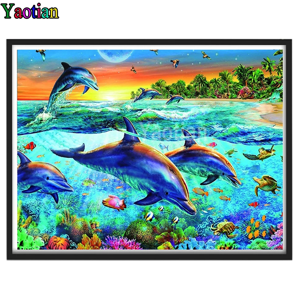 Алмазная 5D картина с животными, дельфином, океаном, ландшафтом, алмазная вышивка, вышивка крестиком, полная выкладка, Новое поступление, мозаика, домашний декор