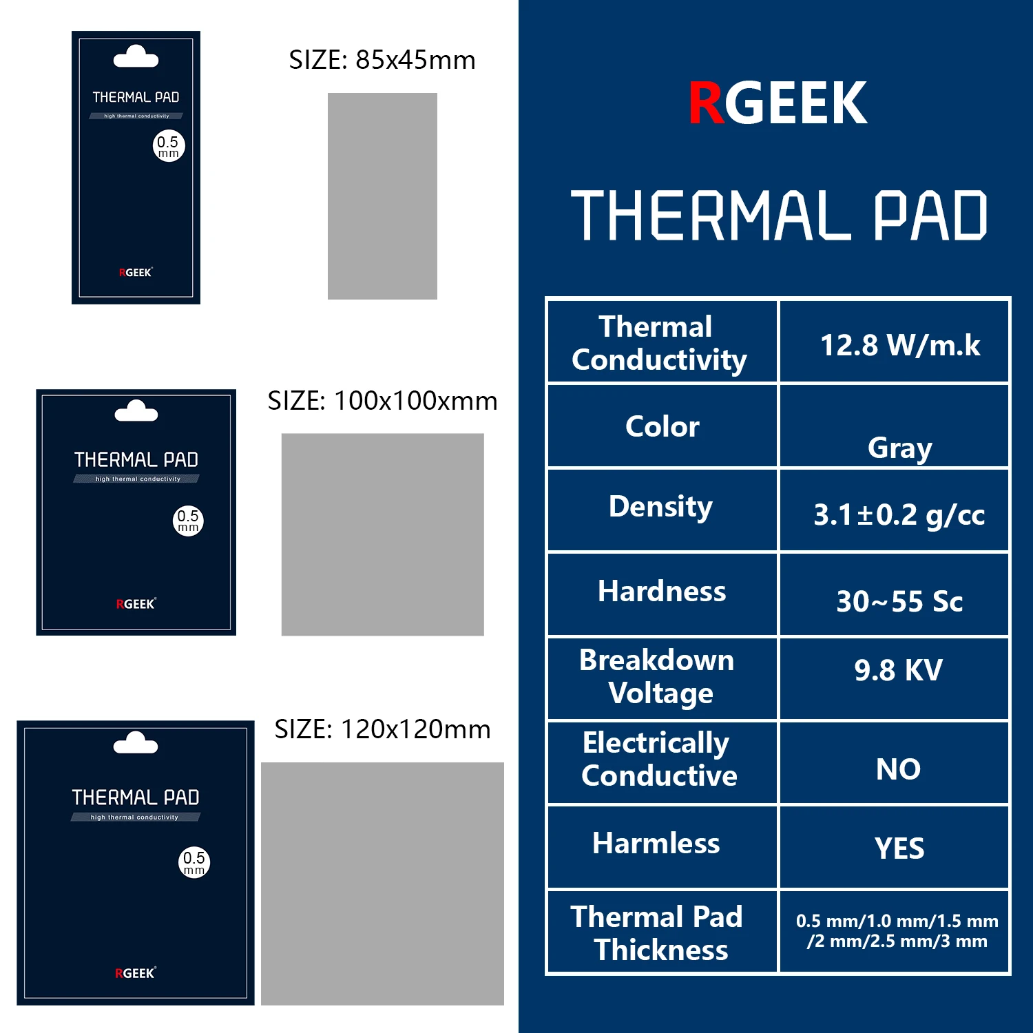 После того, как RGEEK запустил высококачественную тепловую смазку, она была высоко оценена. Мы внедрили новую технологию, чтобы сделать ее легкой для всех игроков, чтобы использовать нашу тепловую прокладку. Этот Rgeek термопрокладка расклассифицированное напряжение тока до 9.8KV и имеет теплопроводность 12,8 W/mk и короткого замыкания. Безопасно использовать без электричества. Эта термоподушка очень универсальна и проста в использовании. Пример: ноутбуки, графические карты, модули памяти DRAM, коммуникационные устройства, твердотельные жесткие диски SSD, устройства управления автомобилем и игровое оборудование и т. Д.