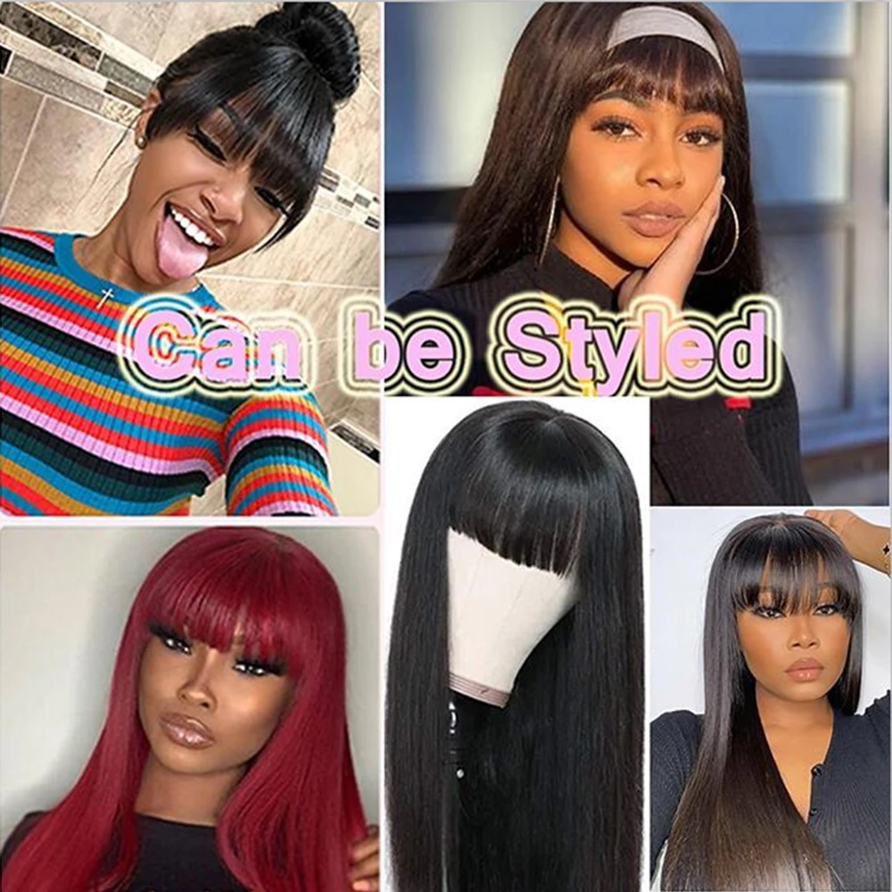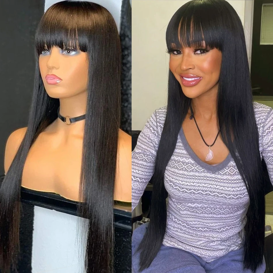 100% парик из человеческих волос с челкой, Короткие парики из человеческих волос Боб для черных женщин, дешевые бразильские прямые черные парики с длинной бахромой 30 дюймов