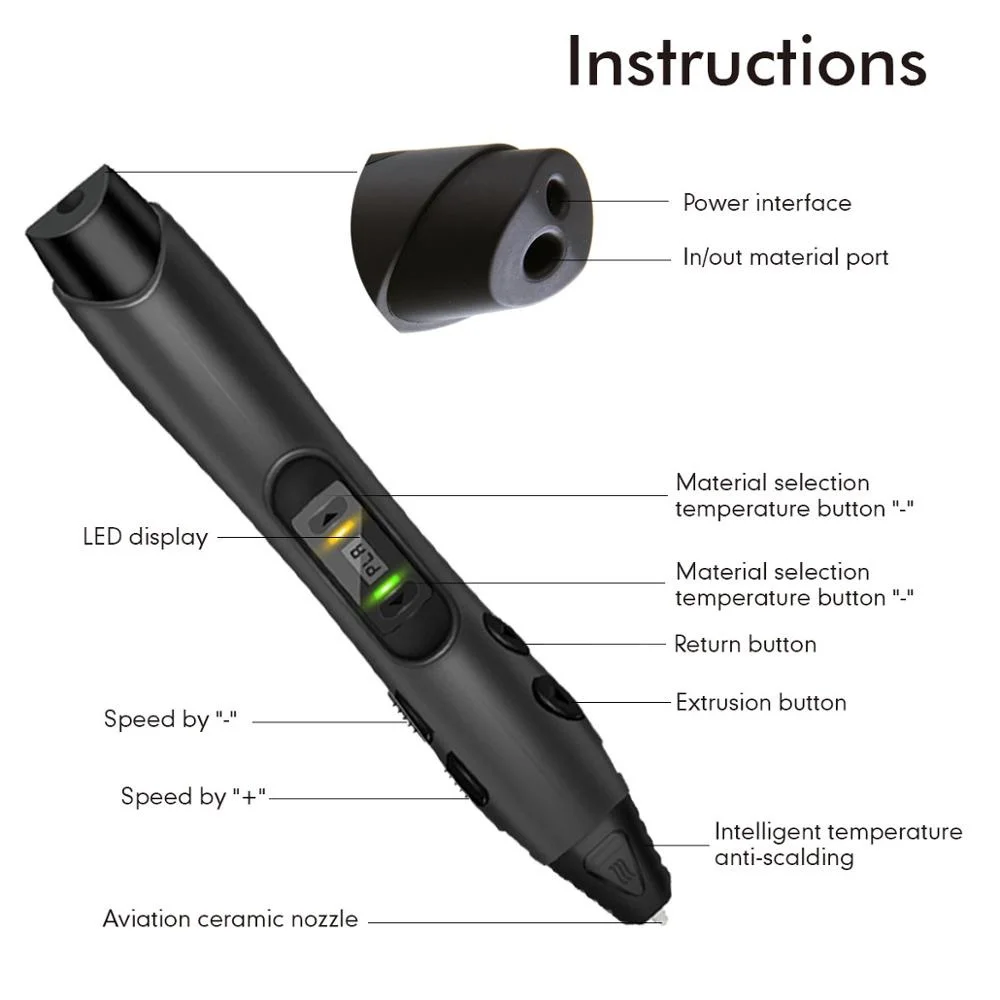 Ручка черная для 3d-рисования, 1,75 мм, с регулировкой температуры
