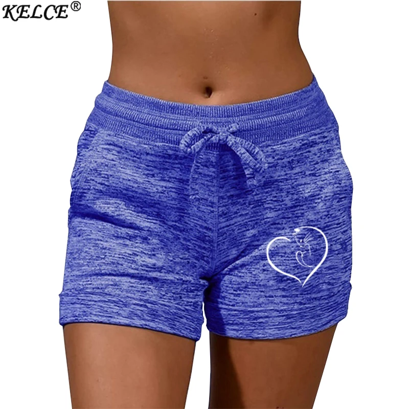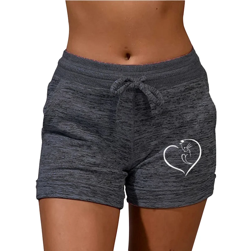 Шорты женские летние с заниженной талией и принтом в виде кошки