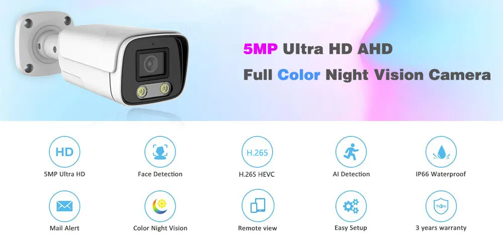 H.265 CCTV AHD аналоговая купольная камера 5MP полноцветная камера ночного видения для наружного использования в помещении IP66 Водонепроницаемая домашняя офисная камера видеонаблюдения HD