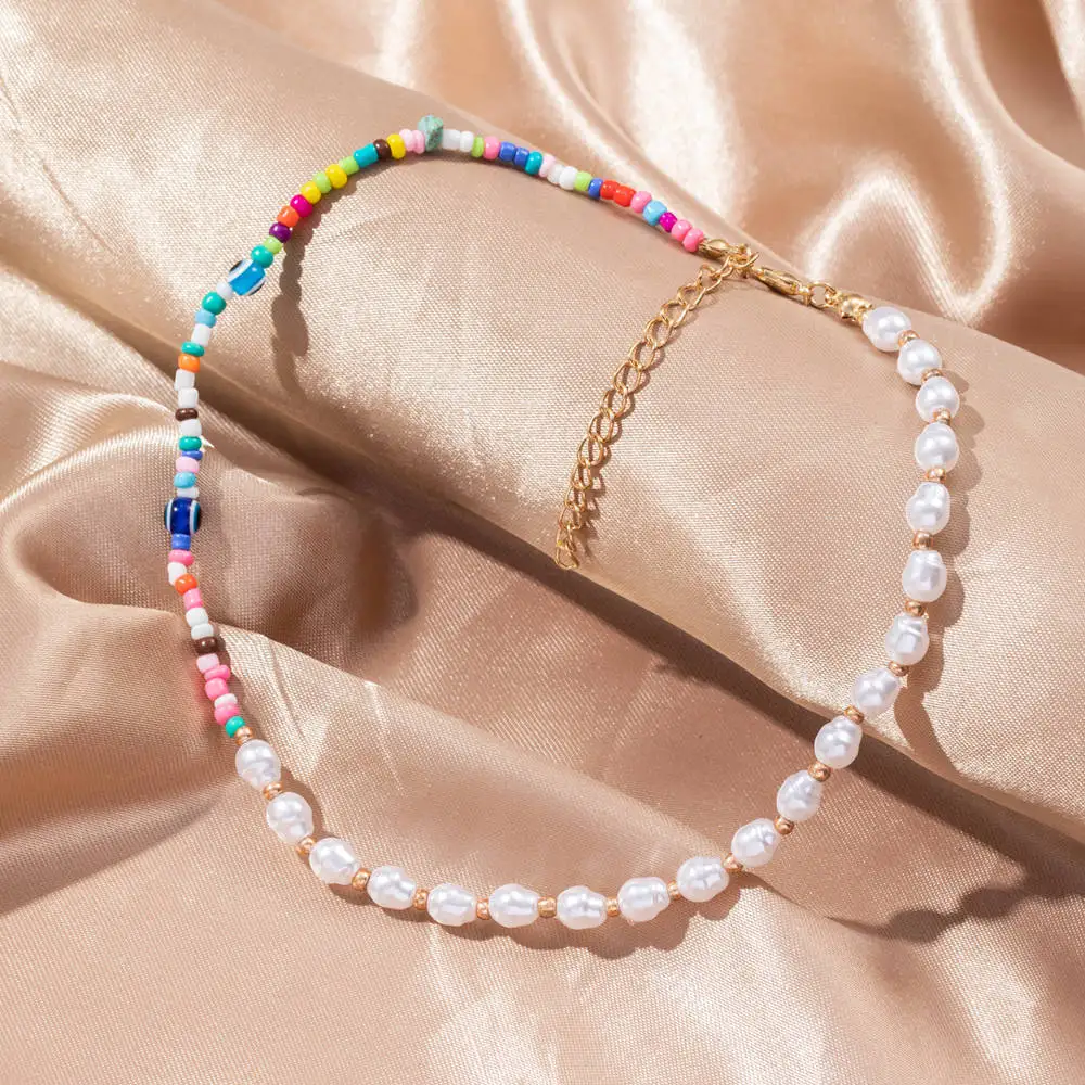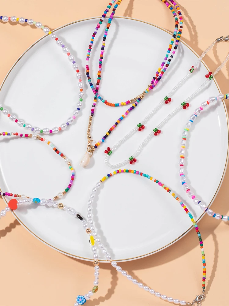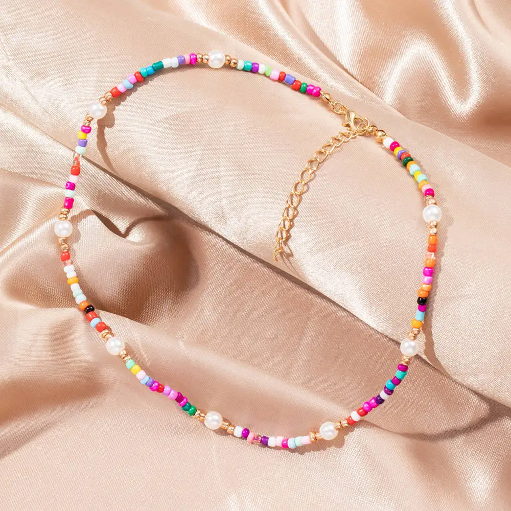 Модные женские богемные яркие короткие украшения ручной работы с бусинами, жемчужное кольцо, ювелирные изделия