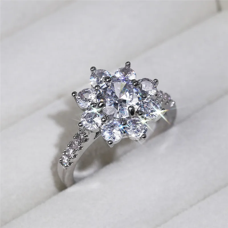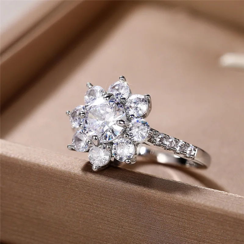 Huitan роскошные женские кольца в форме цветка полностью выложенные блестящие кубические циркониевые Модные кольца для свадьбы помолвки леди 2021 ювелирные изделия