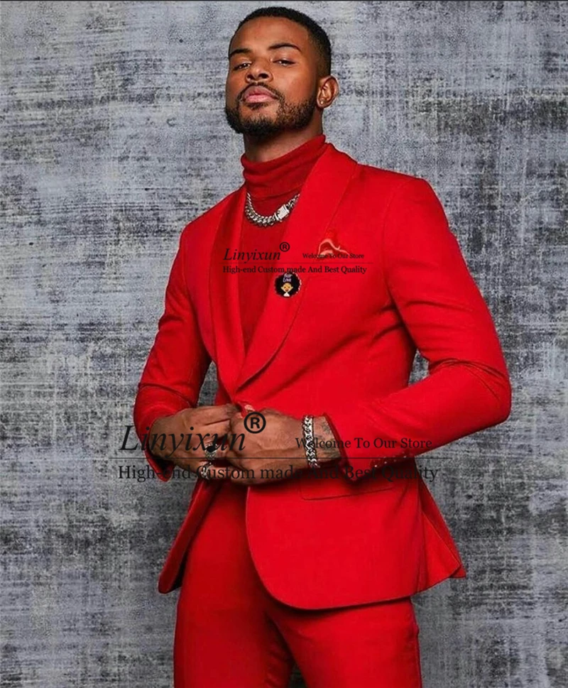 Красные мужские костюмы, облегающие Свадебные смокинги для жениха, мужской костюм для жениха, блейзер, официальный деловой костюм для выпускного, 2 предмета, куртка, брюки