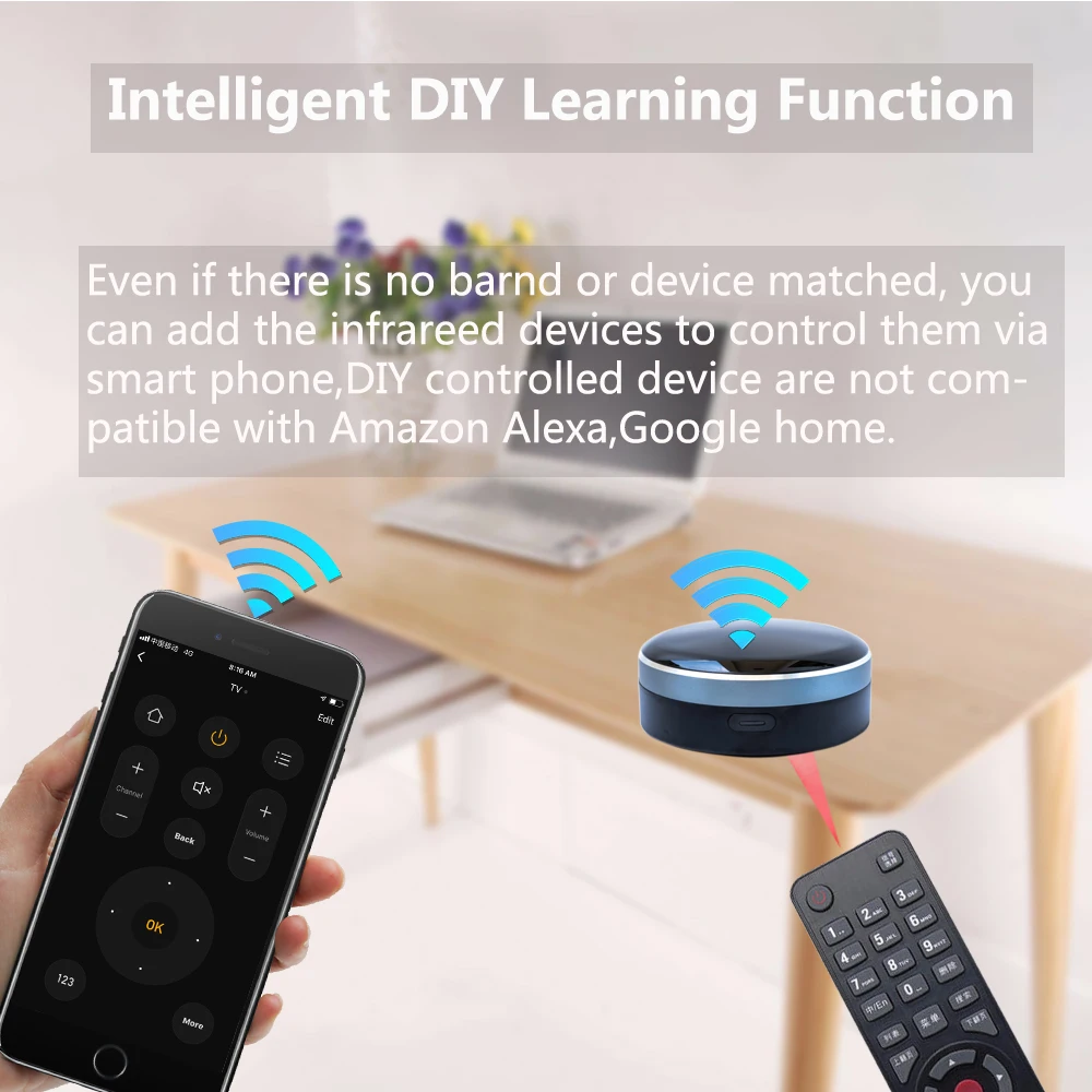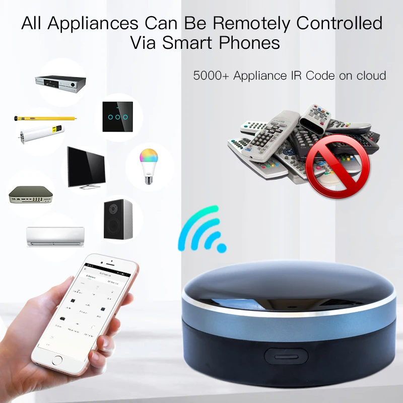 Дистанционное управление бытовой техникой с помощью приложения «Tuya Smart» или «Smart Life». Например, включите кондиционер, независимо от того, где вы находитесь.-Поддержка 99% кондиционера на рынке, автоматическое совпадение облака, легко настроить.-Включите AC заранее, наслаждаясь комфортной температурой, как только вы вернетесь домой.