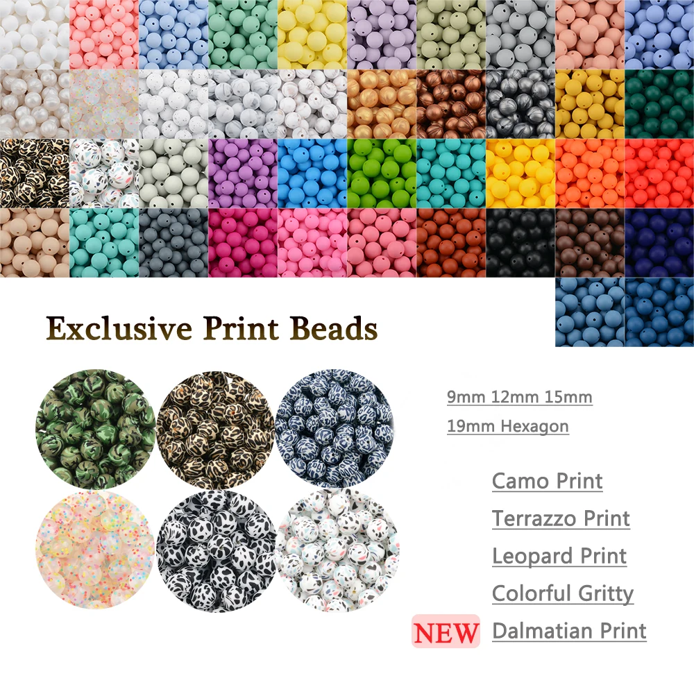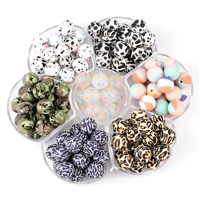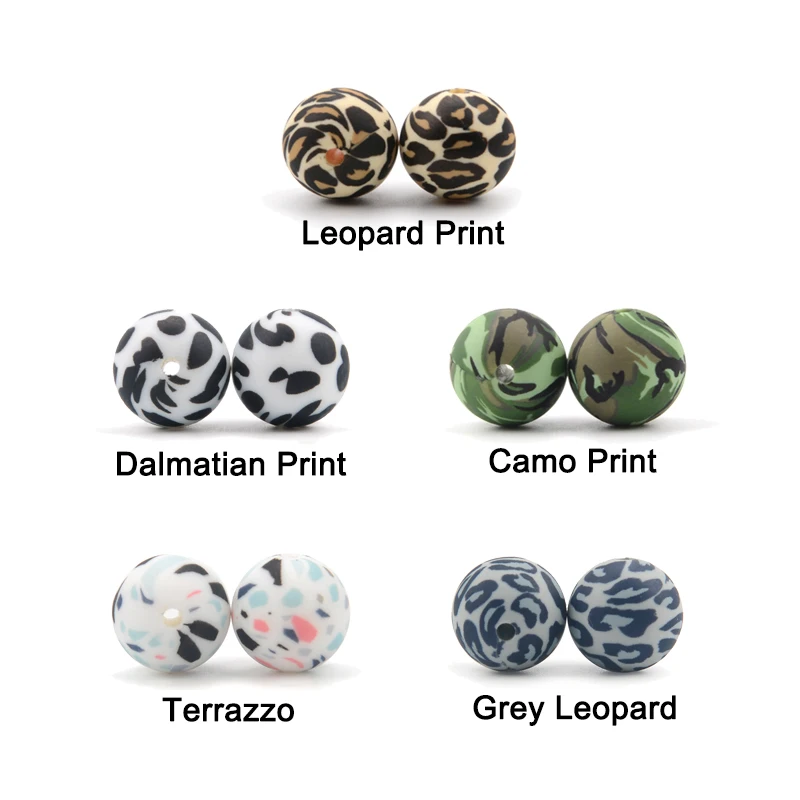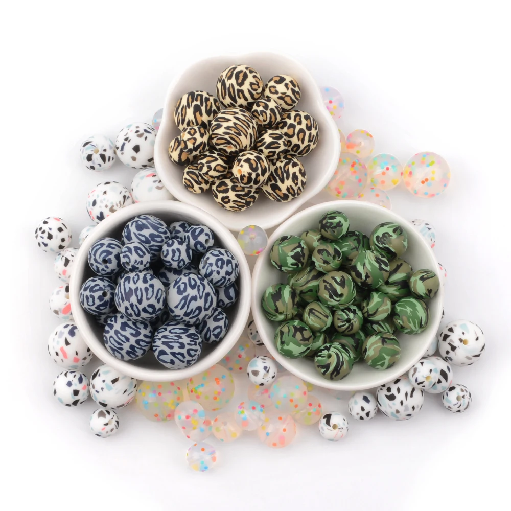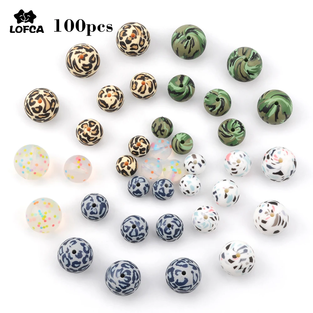 LOFCA 100 шт. камуфляжные силиконовые бусины леопардовые 121519 мм Детские Прорезыватели для зубов из далматинского терраццо шестигранные бусины для прорезывания зубов DIY ювелирные изделия