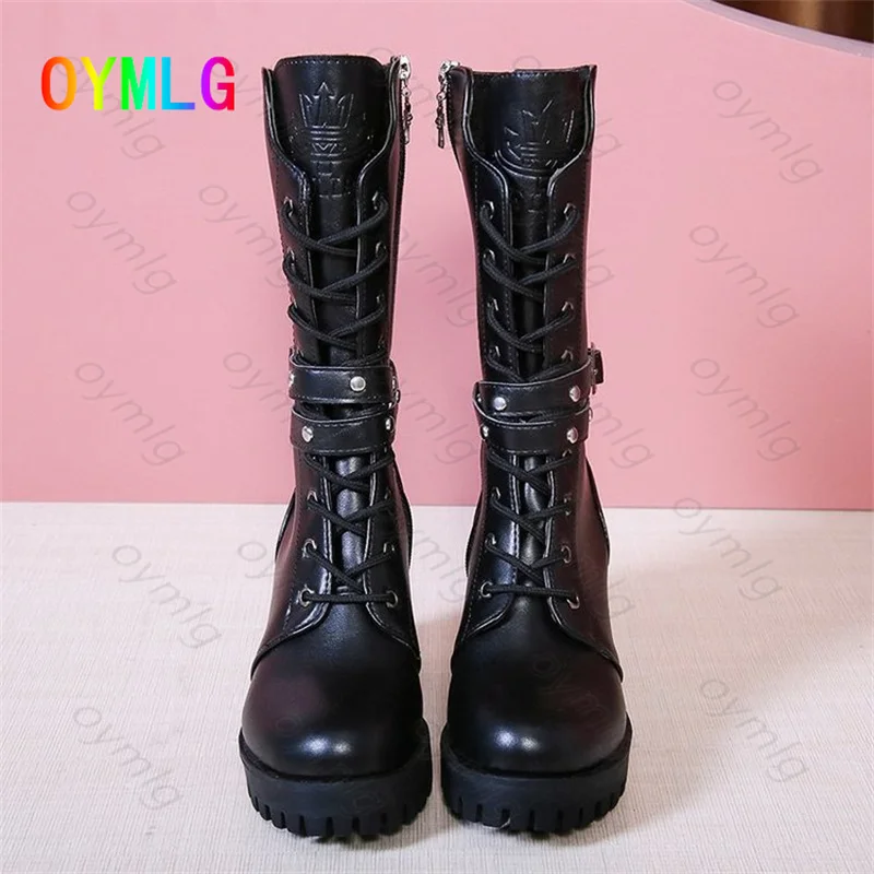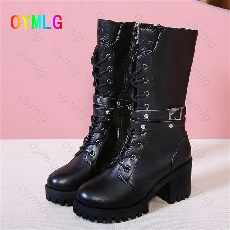 Женские ботинки-мартинсы средней длины, новинка осень-зима 2021, мотоциклетные ботинки в британском стиле на толстой подошве и толстом каблуке, женские ботинки