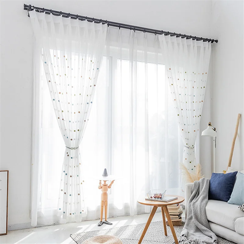 Белая Тюлевая занавеска с вышивкой в разноцветные точки для детской...