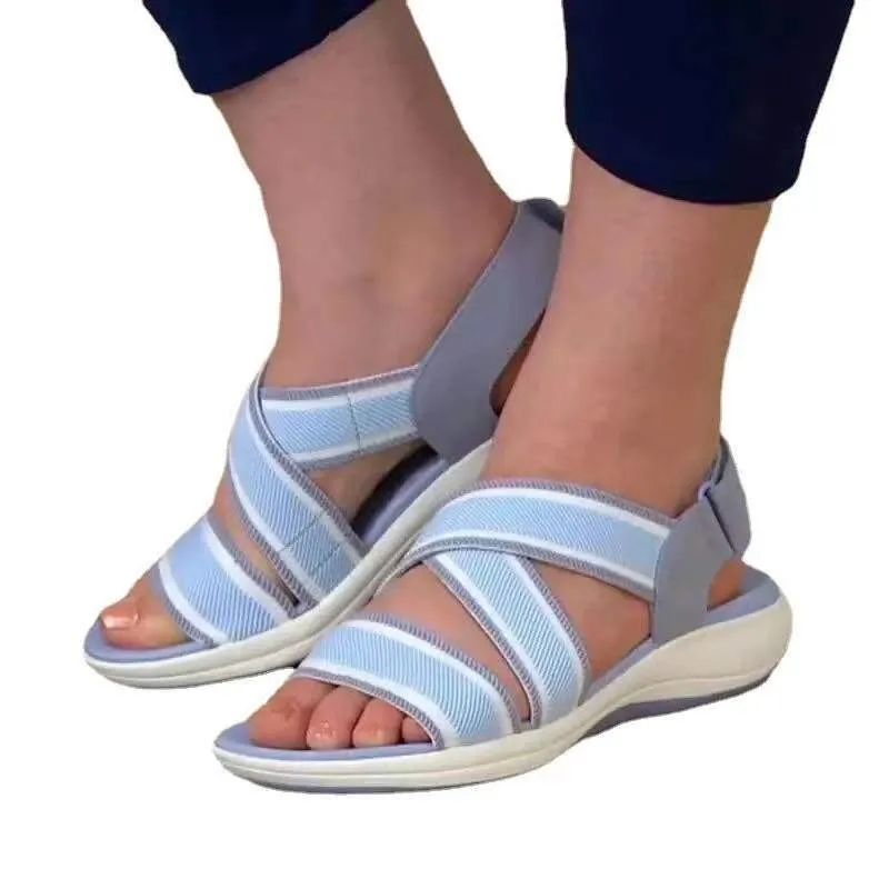 На застежке-липучке; Женские сандалии из стрейчевой ткани крест на ...