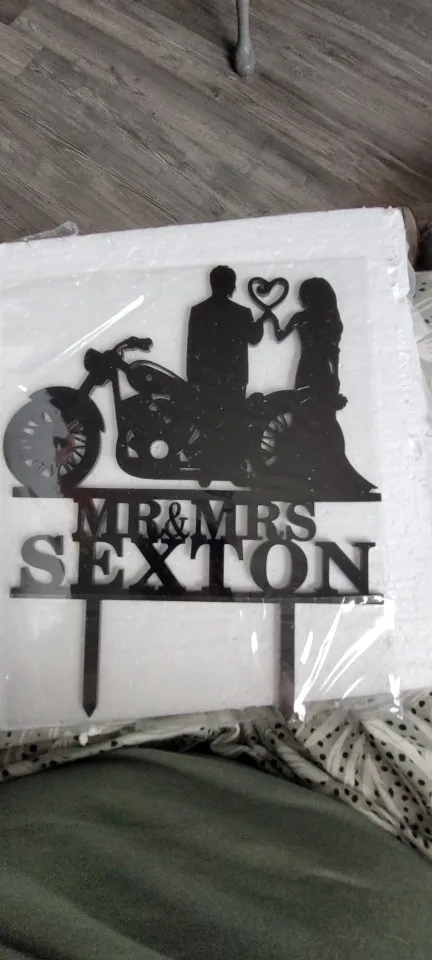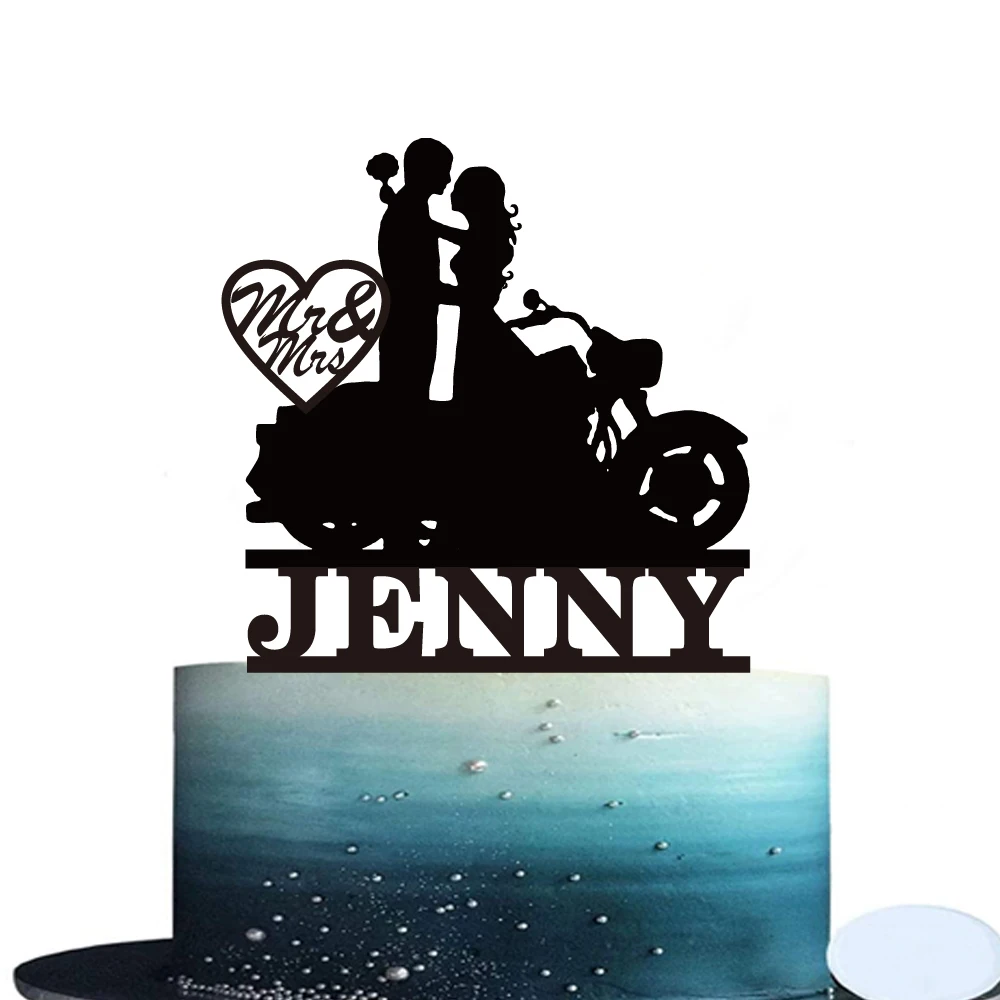 Персонализированный мотоцикл пара свадебный торт Топпер на заказ Жених и невеста няня украшение Спортивная Тема акриловый торт Топпер