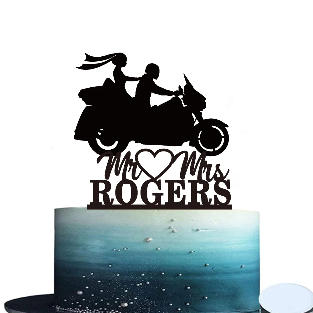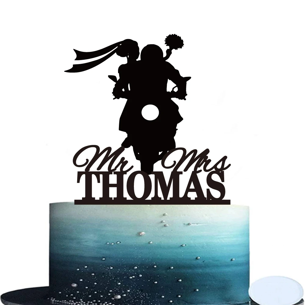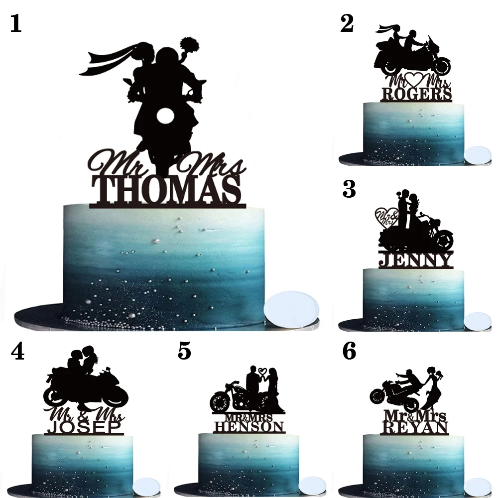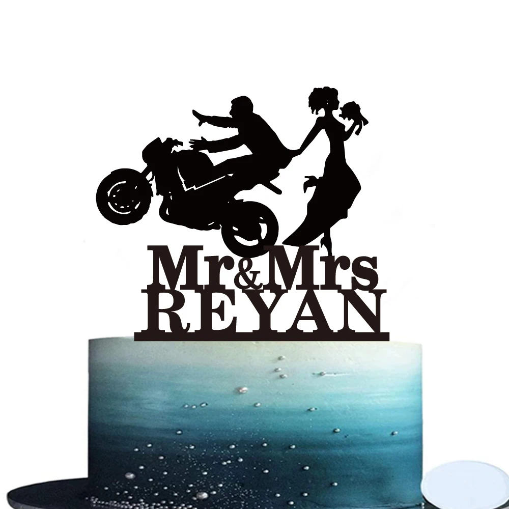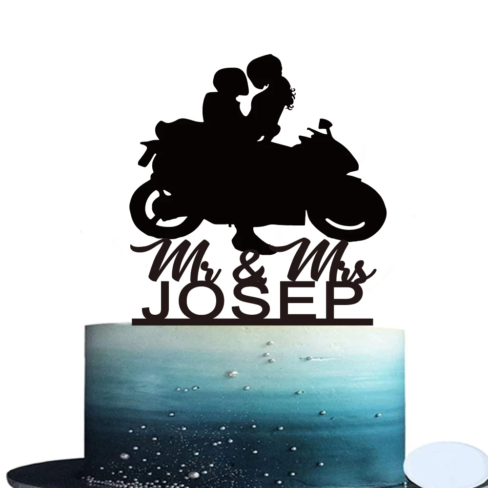 Персонализированный мотоциклетный Топпер для свадебного торта пары, украшение для торта жениха и невесты, Спортивная Тема, акриловый Топпер для торта