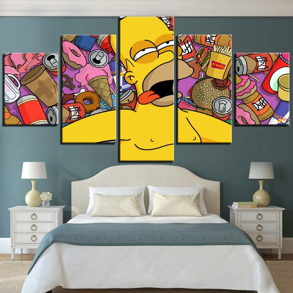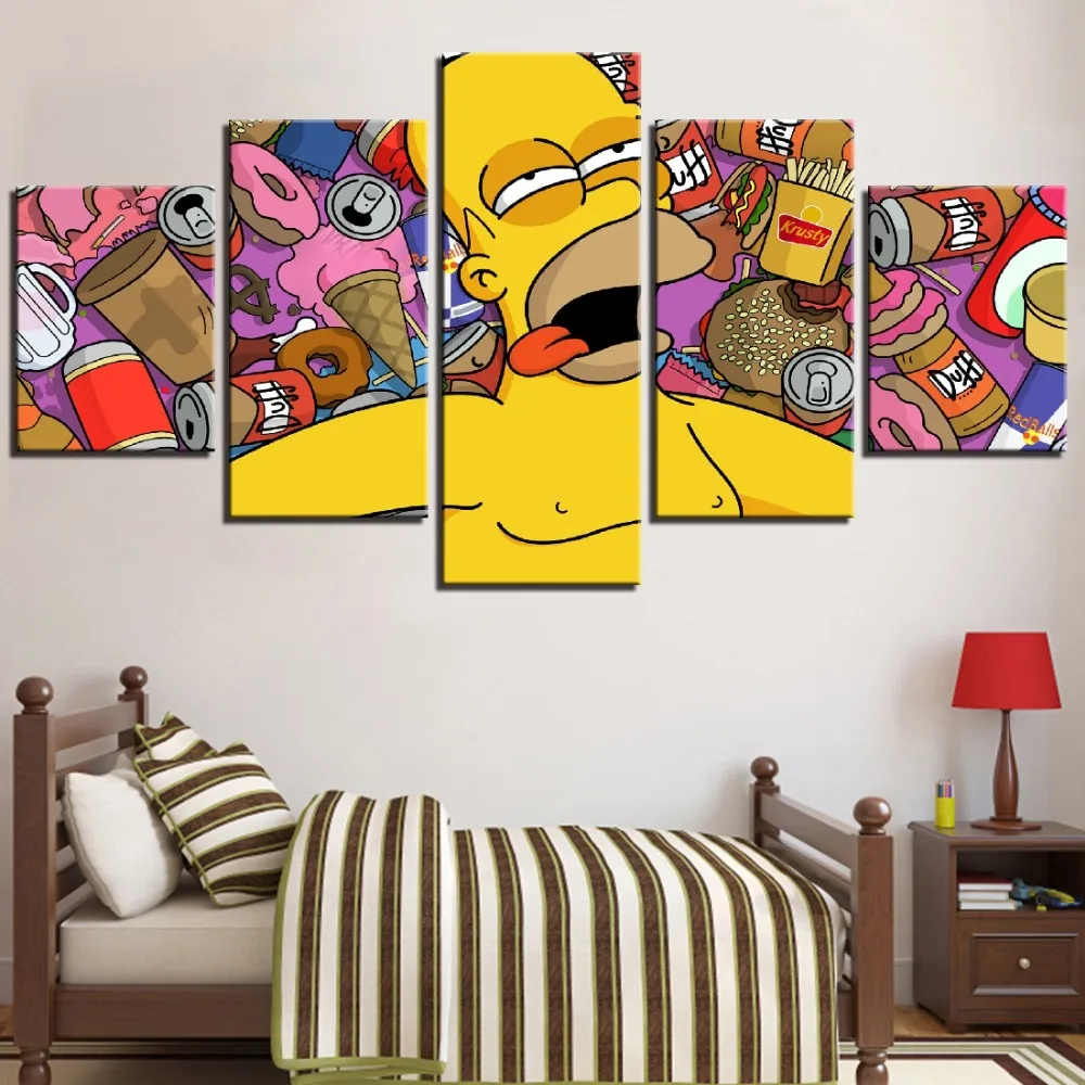 Картина с изображениями Симпсонов, аниме, фаст-фуд, 5 панелей, искусство на холсте на стене HD, для гостиной, для детской спальни, домашний декор icon star icon star icon star icon star icon star