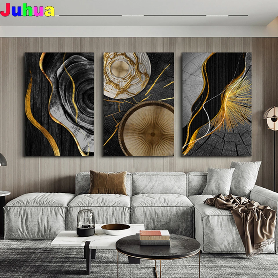 Скандинавское искусство золотой и черный абстрактный Diy Алмазная картина полная дрель 5d годовое кольцо Алмазная вышивка Декор для гостиной