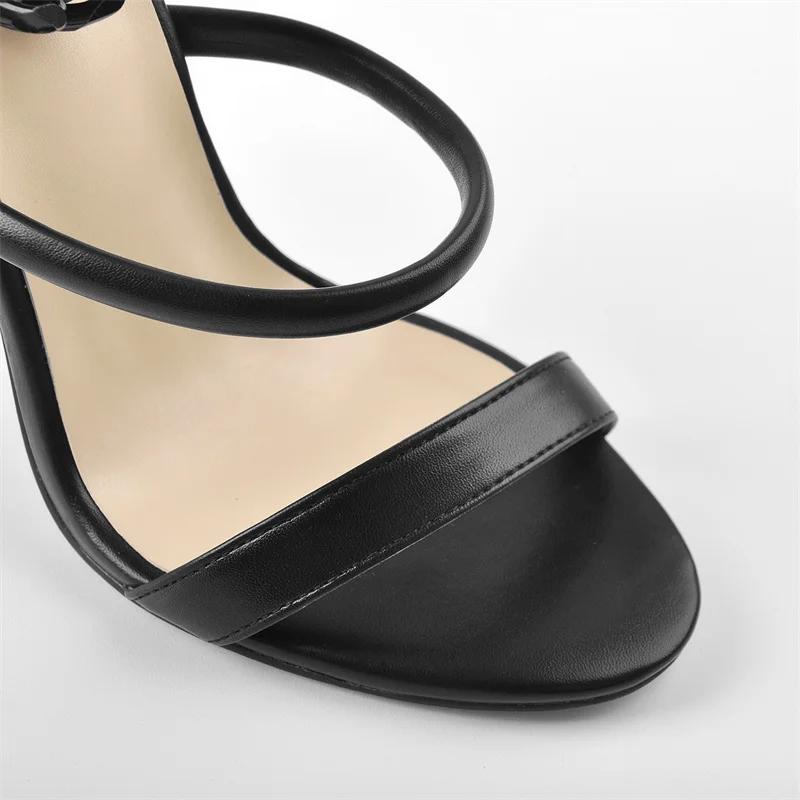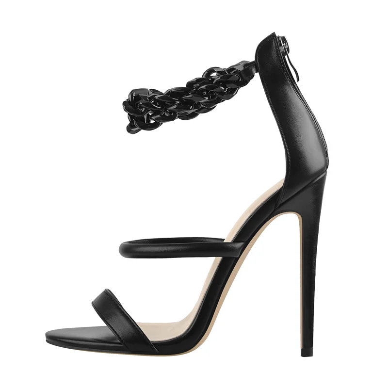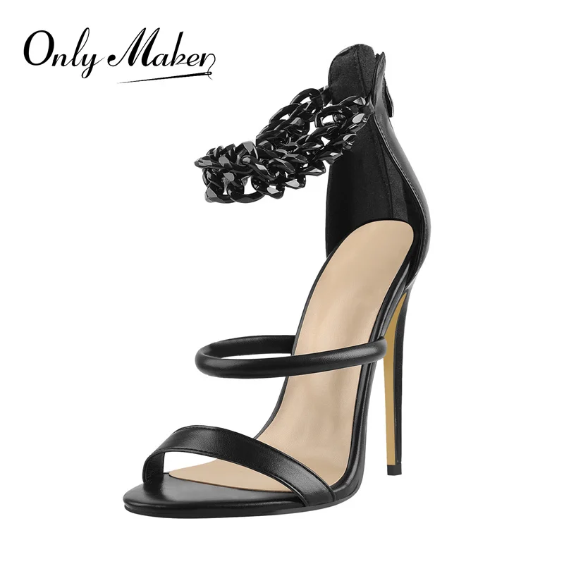 Босоножки Onlymaker Женские с открытым носком, матовые черные туфли с узким ремешком на щиколотке, с металлической цепочкой, на шпильке, на молнии, лето