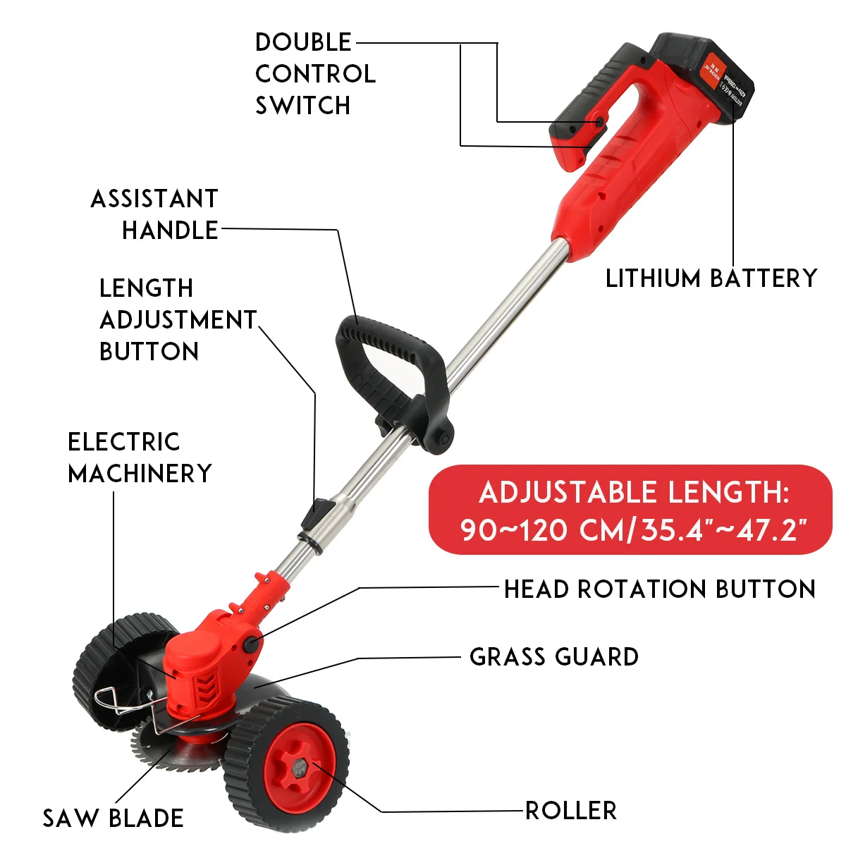 Особенности:-1880 Вт высокомощная водонепроницаемая и малошумная головка, легко моется.-С роликом, вы можете легко перемещаться в любое место, которое вам нужно обрезать.-Беспроводная Конструкция литиевой батареи, низкое энергопотребление и низкий уровень шума.-С травой щитком, он может предотвратить сорняки от брызг во время прополки.-Легко справиться с прихватками, маятниковой местностью, кромкой лужайки, цветком, под цветочной решеткой и другими зонами.-Косите траву на плоской поверхности, быстро обрежьте траву на лужайке, с гибким углом и быстро обрежьте стог сена.-Специальный забор для защиты растений может эффективно предотвратить травмирование цветников питомника, а специальные перегородки могут эффективно предотвратить брызги травы.-Двойной переключатель управления, два переключателя должны быть запущены нажатием нижней части в то же время, что безопаснее, чтобы предотвратить случайное касание.-Эргономичный дизайн ручки, ручка может регулировать направление по желанию, удобно держать, и она не устает работать в течение длительного времени.