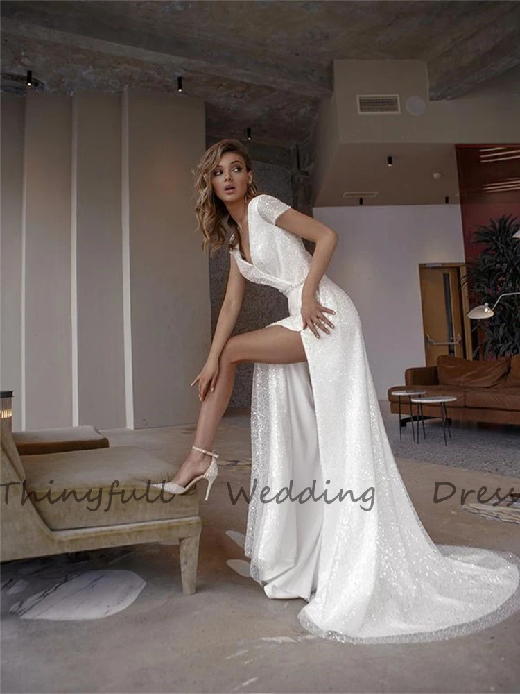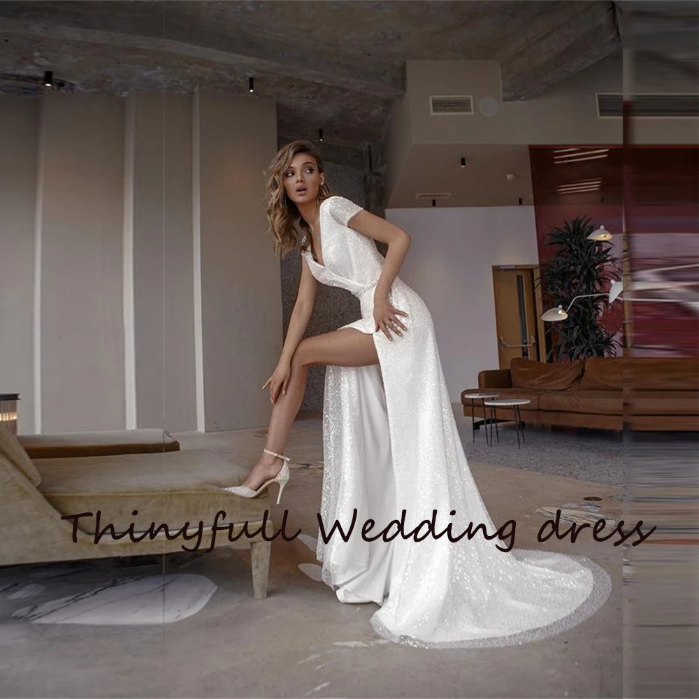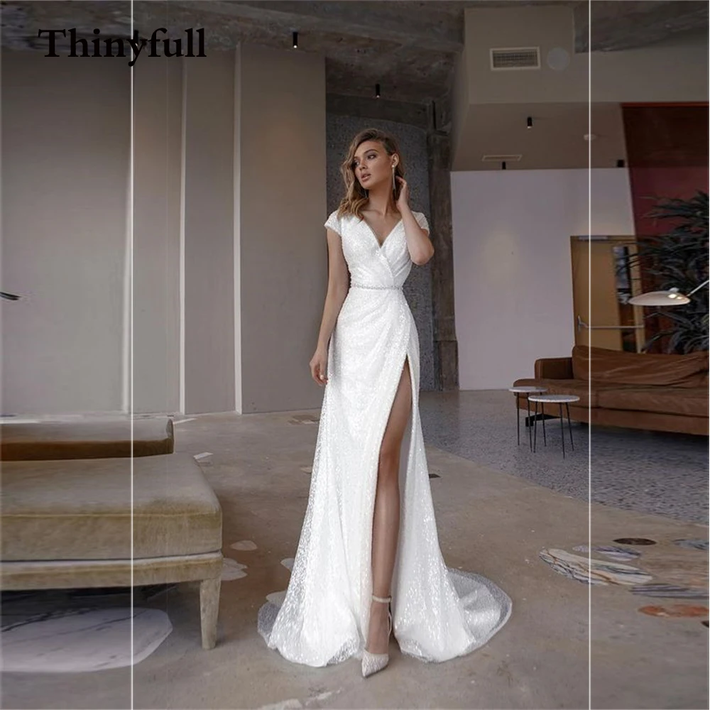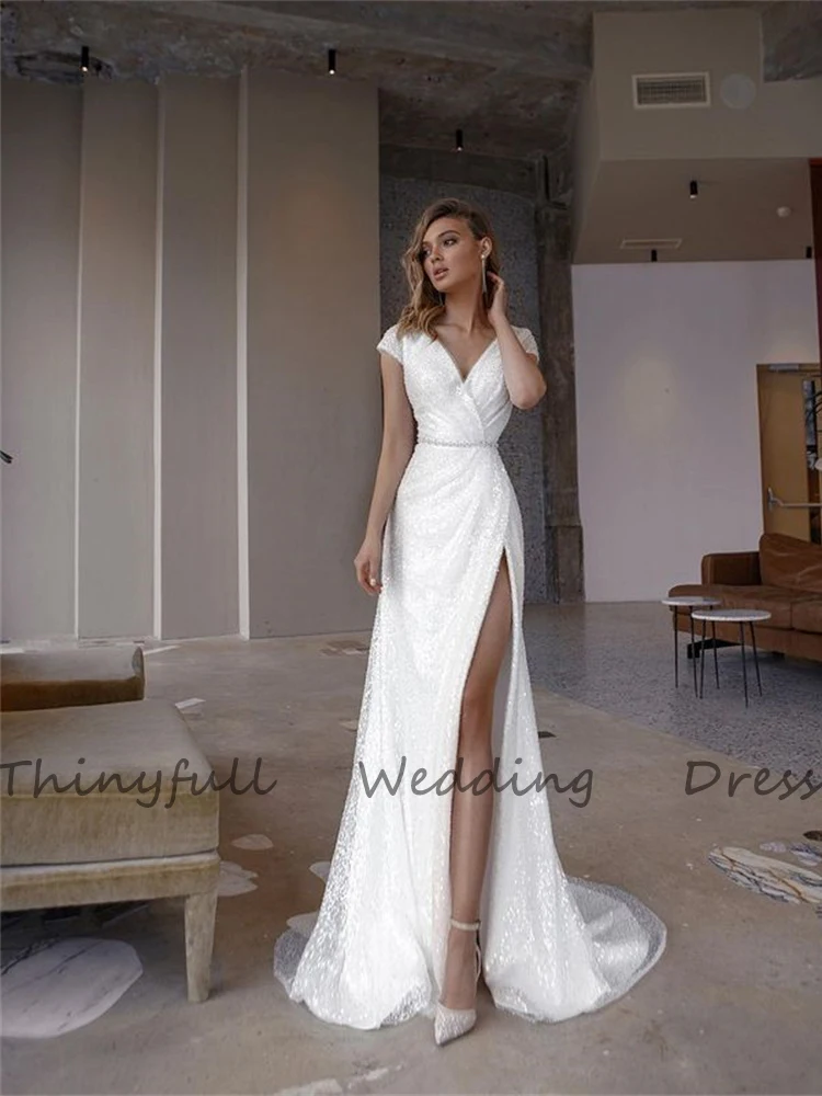Шикарные блестящие Длинные свадебные платья Бохо С Боковым Разрезом, сексуальные женские пляжные вечерние свадебные платья, платье для невесты в сельском стиле
