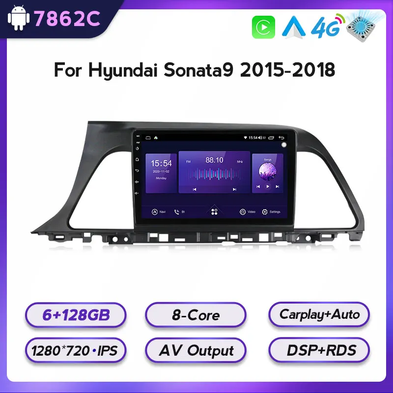Автомобильный радиоприемник, 2 DIN, с вентилятором 128G, Android 11 BT DSP, радио, видео, мультимедийный плеер, навигация GPS, для Hyundai Sonata 7 LF 2014 - 2017