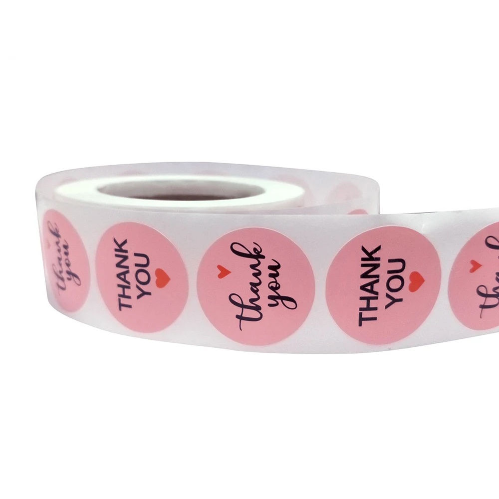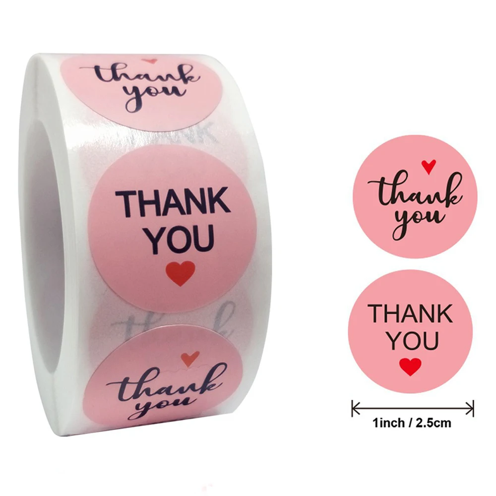 500 шт. круглыхрозовых сердечек, спасибо с красными наклейками на любовь для бизнеса этикетки для печати