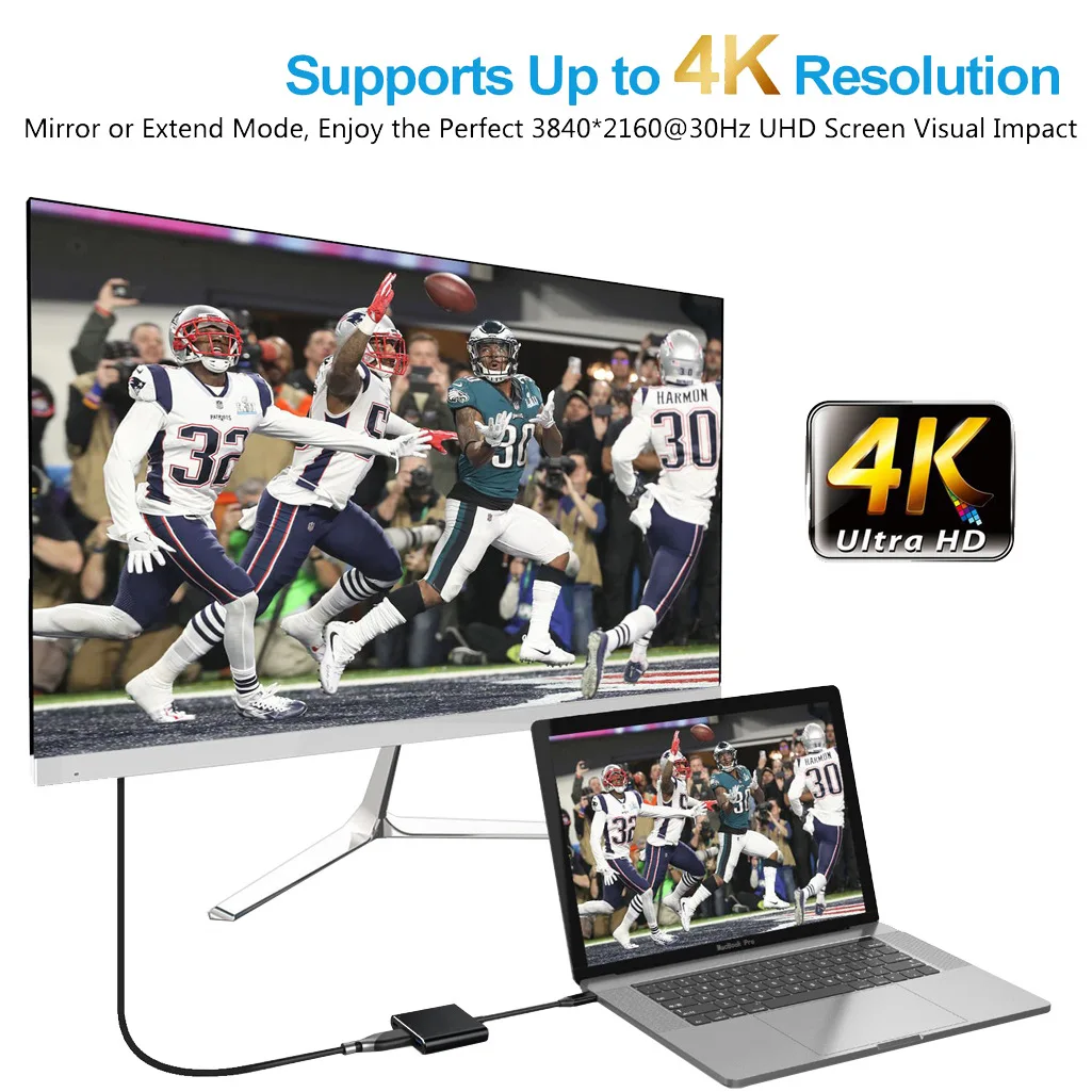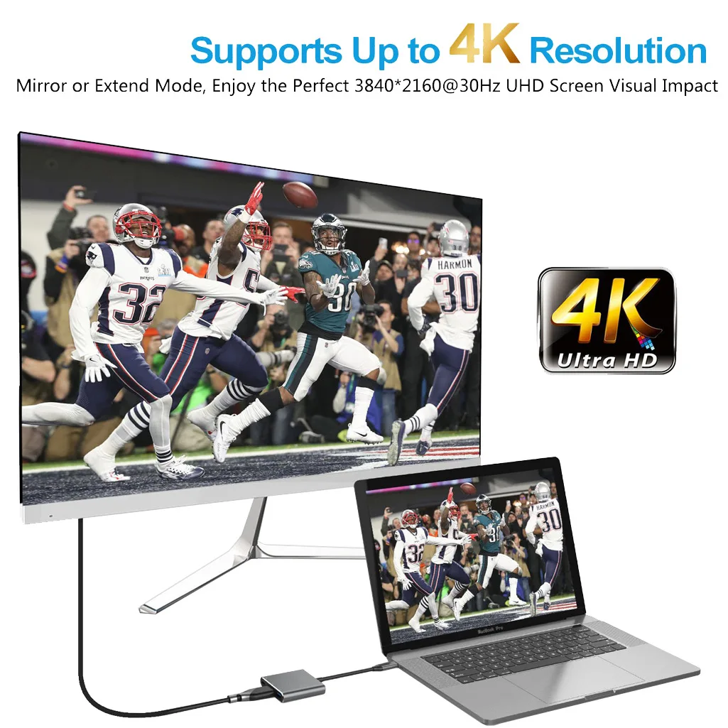 [Адаптер USB C Hub SUPER HD 4K] адаптер, совместимый с USB C и HDMI, поддерживает разрешение видео до 4K (3840X2160P / 30 Гц), совместим с большинством телевизоров высокой четкости, мониторы, проекторы и другие устройства с портами, совместимыми с HDMI, обеспечивают реалистичное видео, супер высокую четкость, четкое изображение лучше смотреть без какой-либо тряски. Подключи и работай, дополнительные драйверы не требуются.