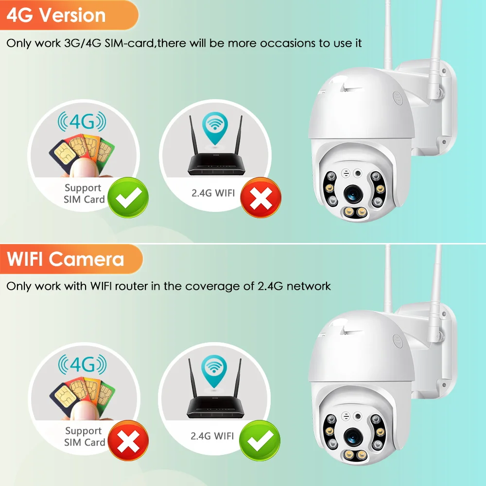 Ваша камера 4G может работать в диапазоне 3G/4G, легко получить доступ к сетевой среде. (не поддерживает сеть Wi-Fi).