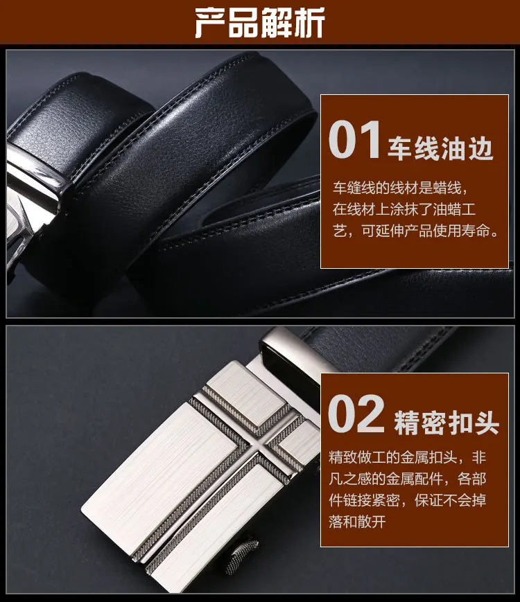 Ремень мужской из натуральной кожи с автоматической пряжкой, брендовый роскошный коричневый металлический пояс