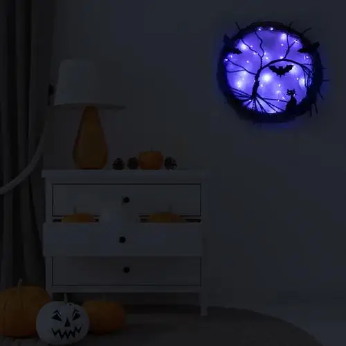 Характеристики:Название: светильник ный венок на ХэллоуинМатериал: ткань + ППРазмер: около 37*37 см/14,57 * дюйма