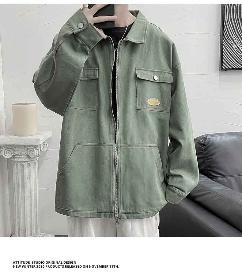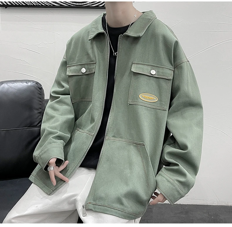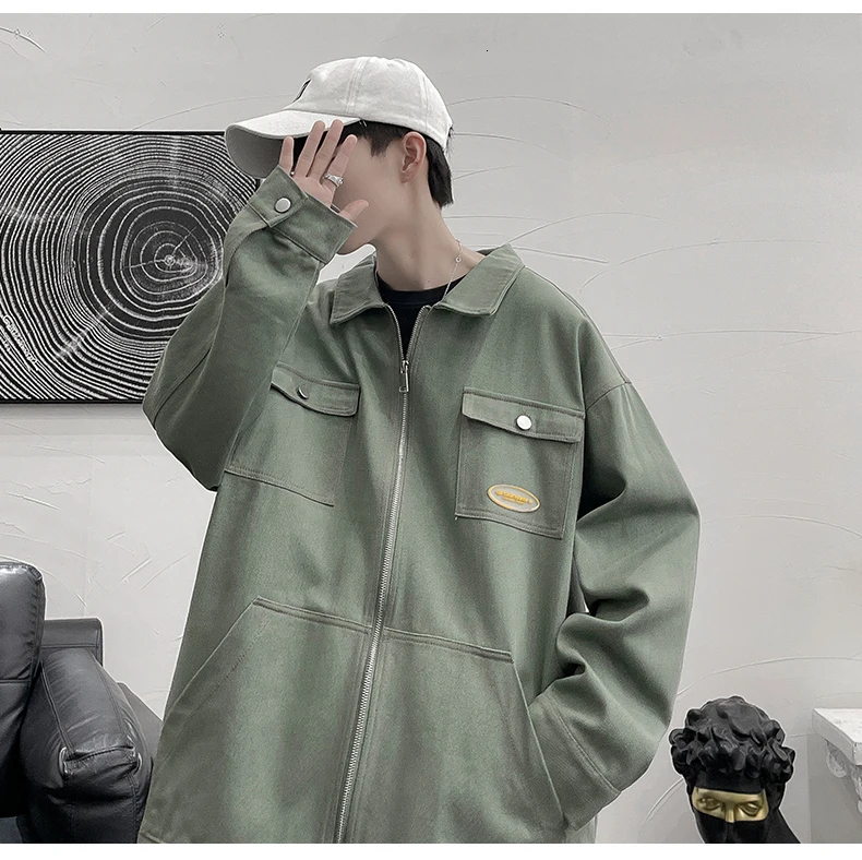 Куртка Hybskr мужская оверсайз в японском стиле, осенняя однотонная свободная повседневная куртка с карманами, брендовая мужская одежда, 2021