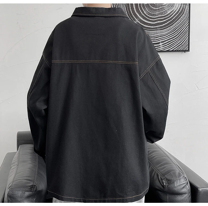 Куртка мужская демисезонная, черная, свободная, в стиле Харадзюку