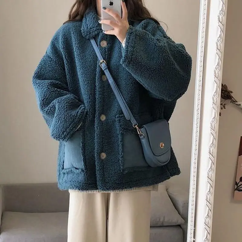 Женская накидка, пальто, женские толстые зимние свободные шерстяные...