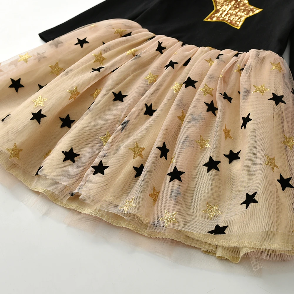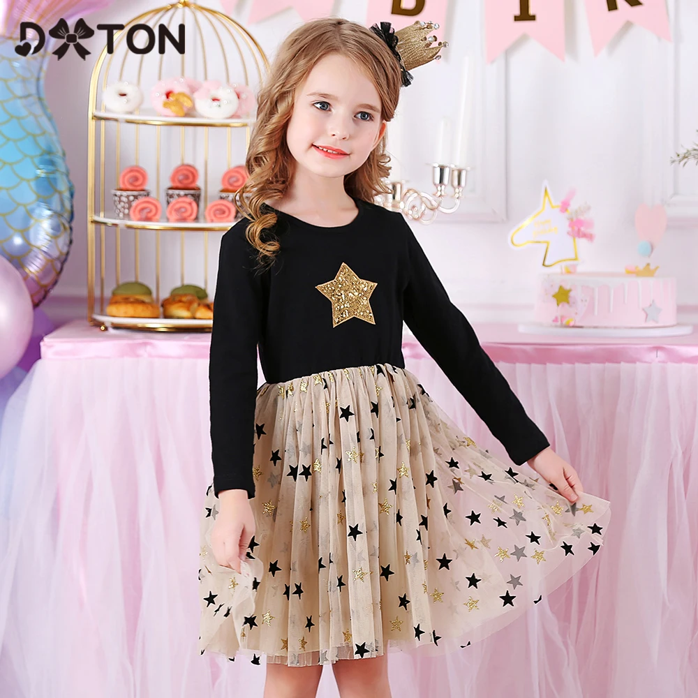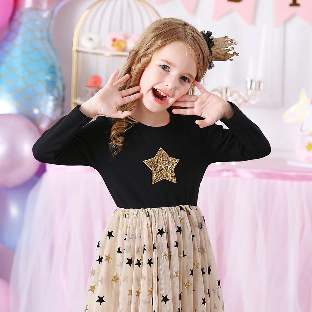 DXTONплатья принцессы для девочек детское хлопковое платье с блестками для девочек, вечерние костюмы со звездами весенне-осеннее детское платье-пачка для девочек, От 3 до 12 лет