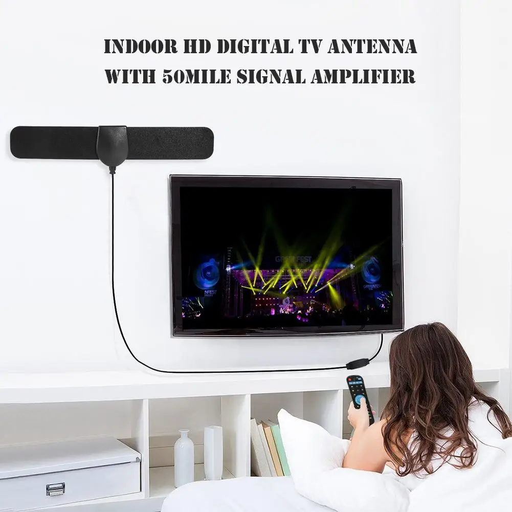Комнатная цифровая ТВ-антенна 50 миль, 25 дБ, 1080P, ресивер ТВ-сиг...