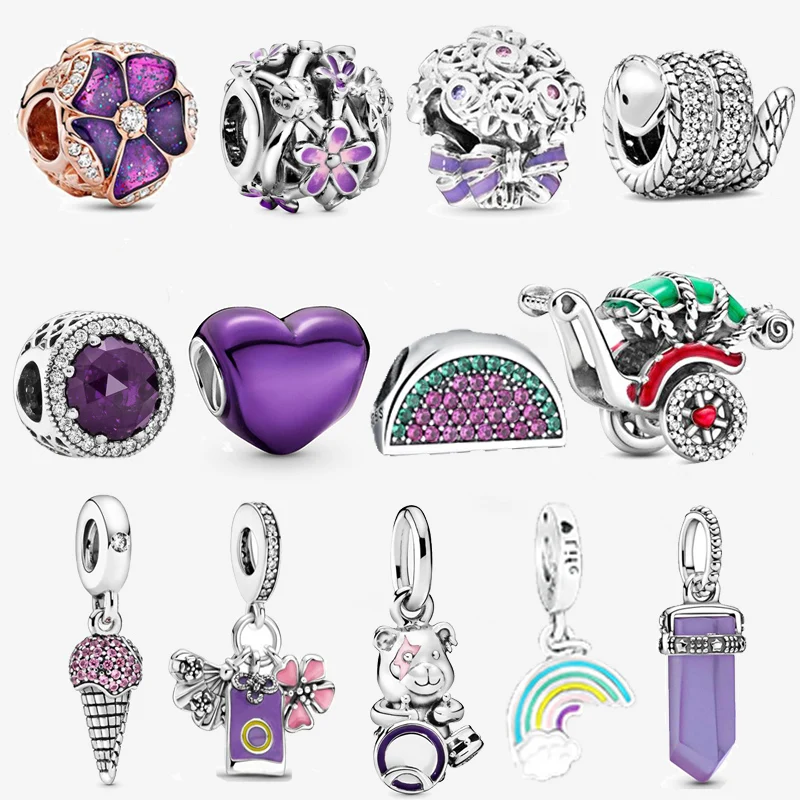 Классические Подвески в виде фиолетового сердца, радуги, подходят для оригинальных браслетов Pandora, женские Украшения сделай сам, подарок