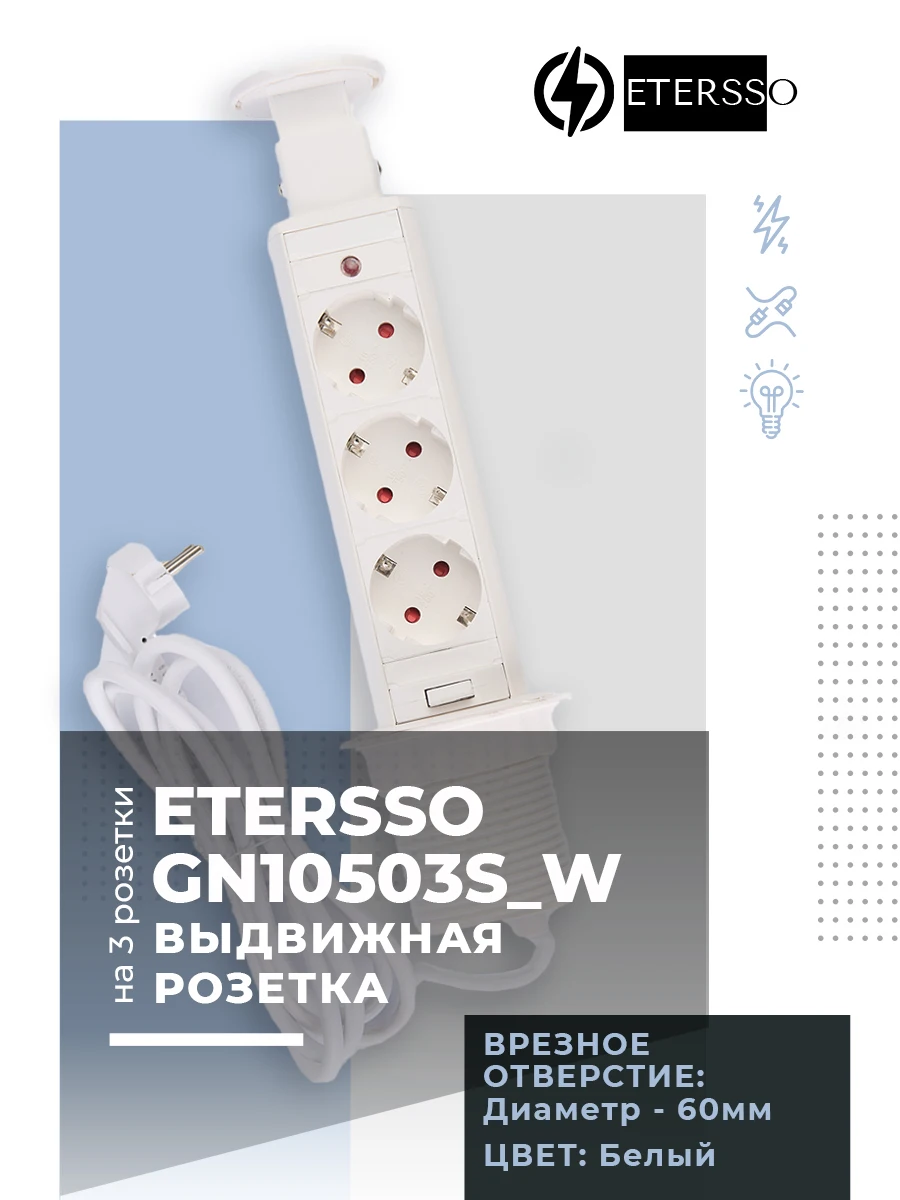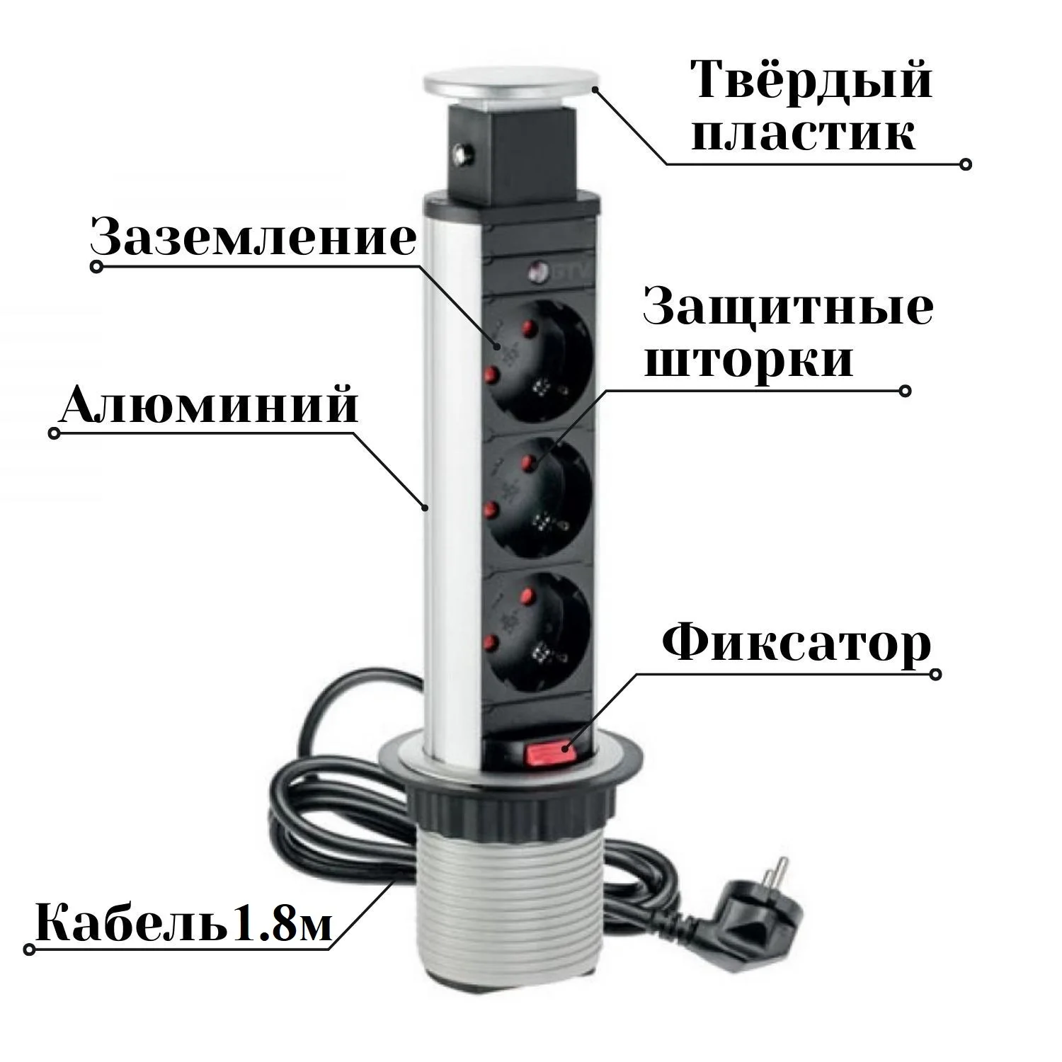 Выдвижная розетка EURO в стол, столешницу на кухню на 3 розетки встраиваемая, алюминиевый корпус, белая, черная, серая