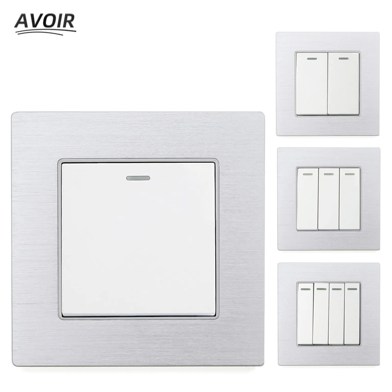Настенные переключатели 1, 2, 3, 4 кнопки, светодиодная лампа, выключатель света, настенный переключатель, кнопочный прерыватель, алюминиевая металлическая панель