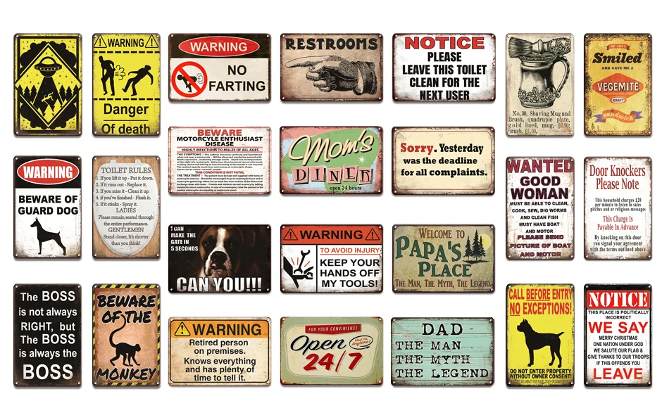 Винтажные металлические плакаты с осторожностью для собак, жестяная...