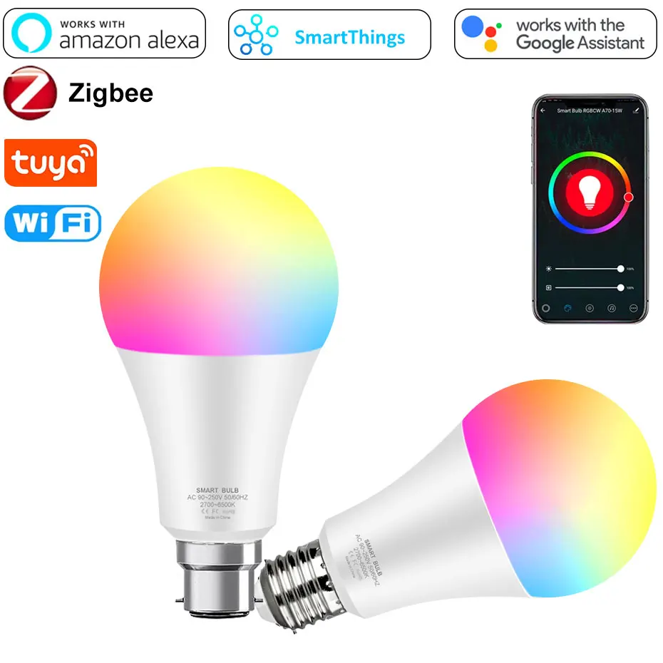 Умная светодиодная лампочка Tuya Zigbee E27, 12 Вт, 15 Вт, Wi-Fi, изменение цвета