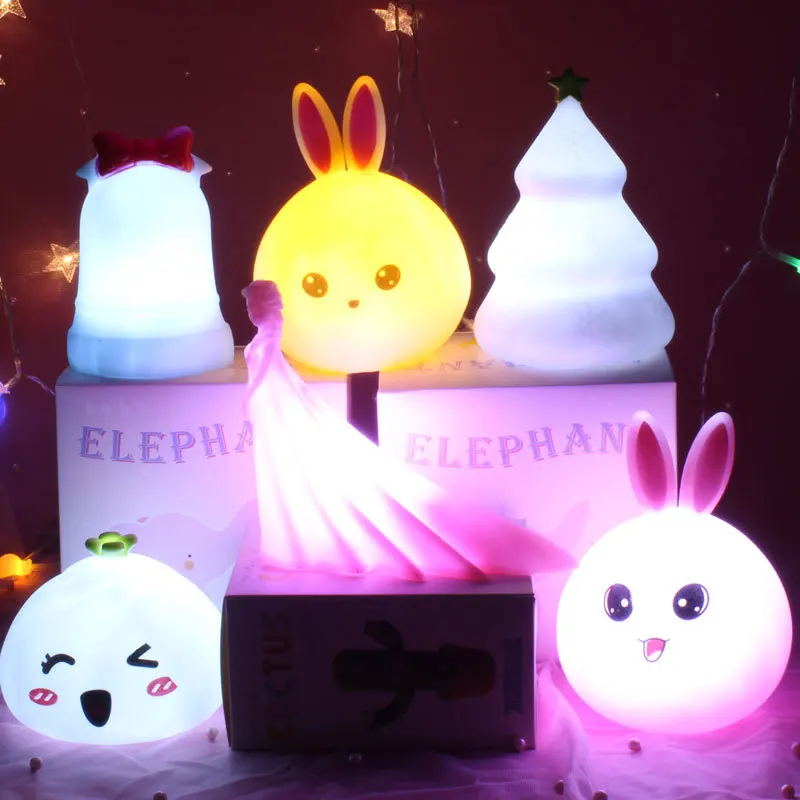 Милый Медведь Кролик бегемотик Сова лампа в форме пингвина RGB светодиодный светильник портативный мультфильм Силиконовые животные лампа для детей детский подарок